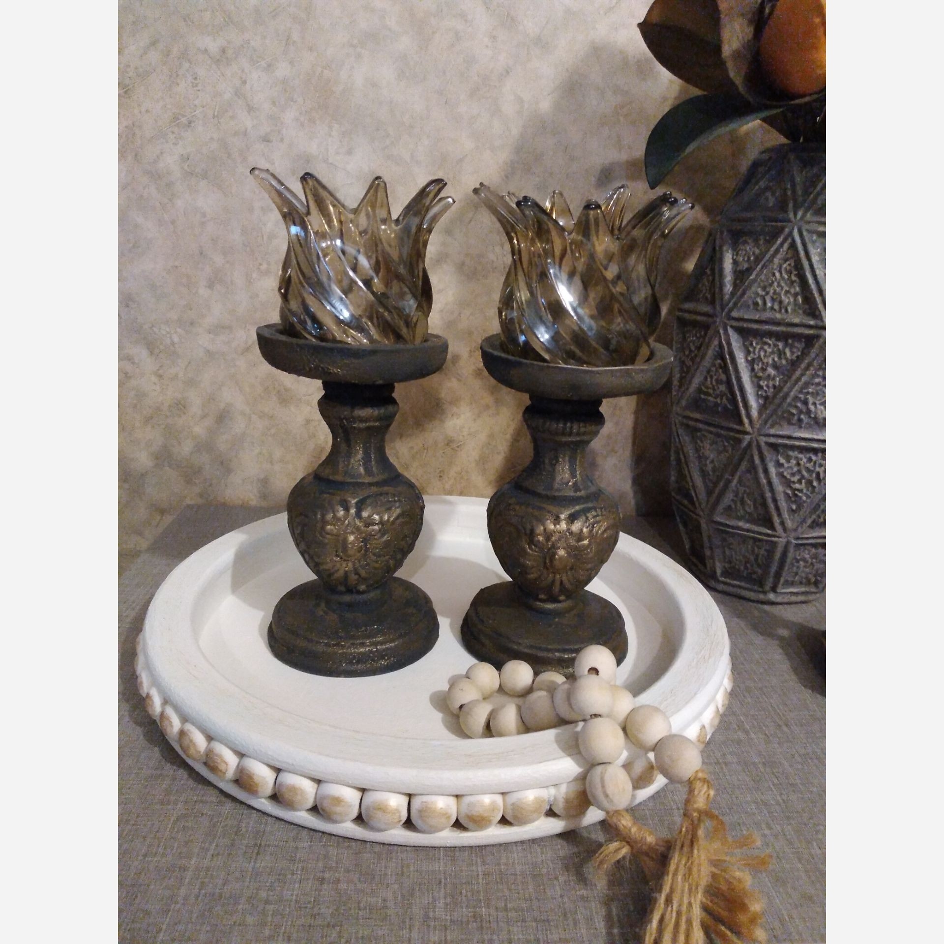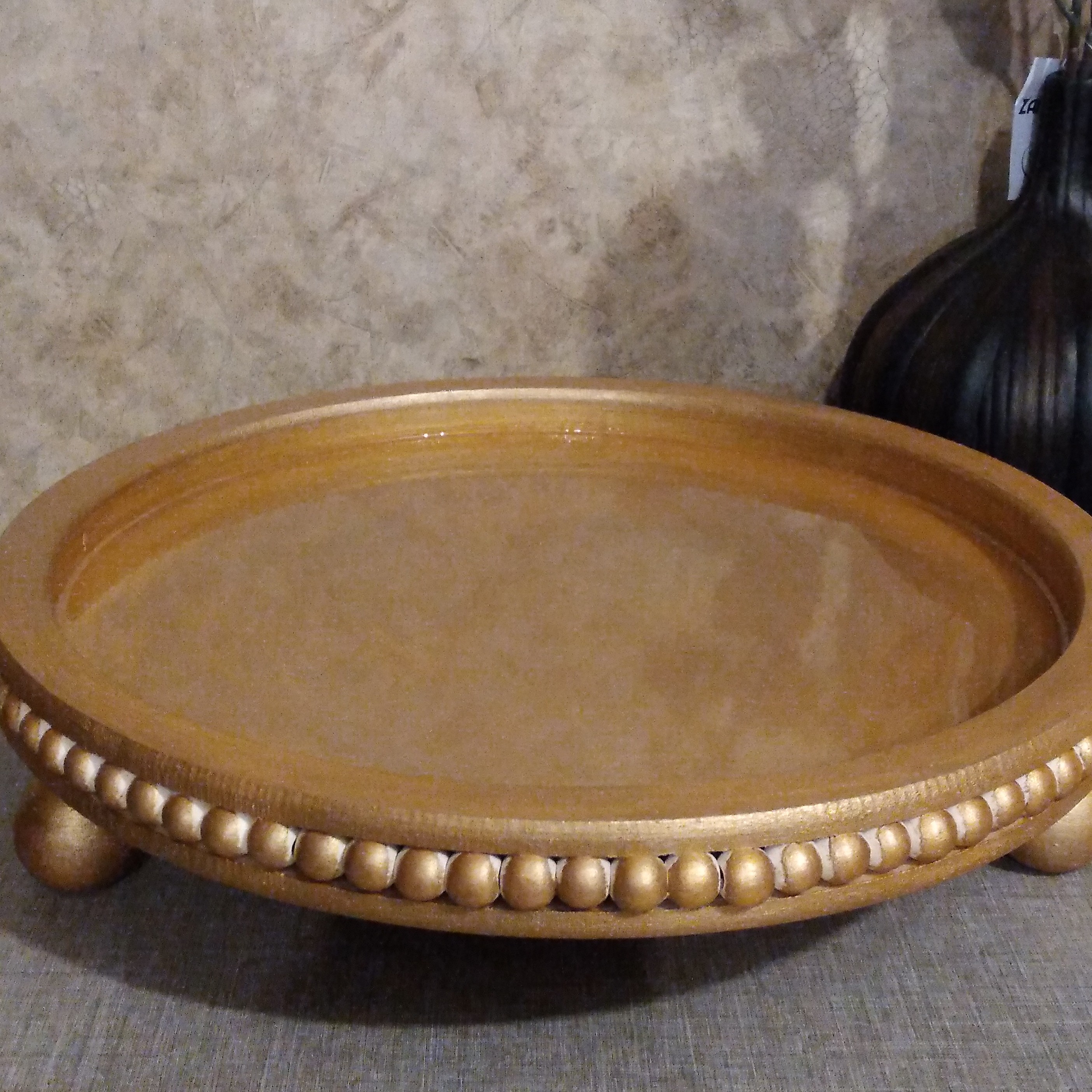 ظرف پذیرایی چوبی شیرینی خوری مهره دار قطر سی سانت اجرا شده با ورق طلای مایع مبلمونسرا مدل 274245