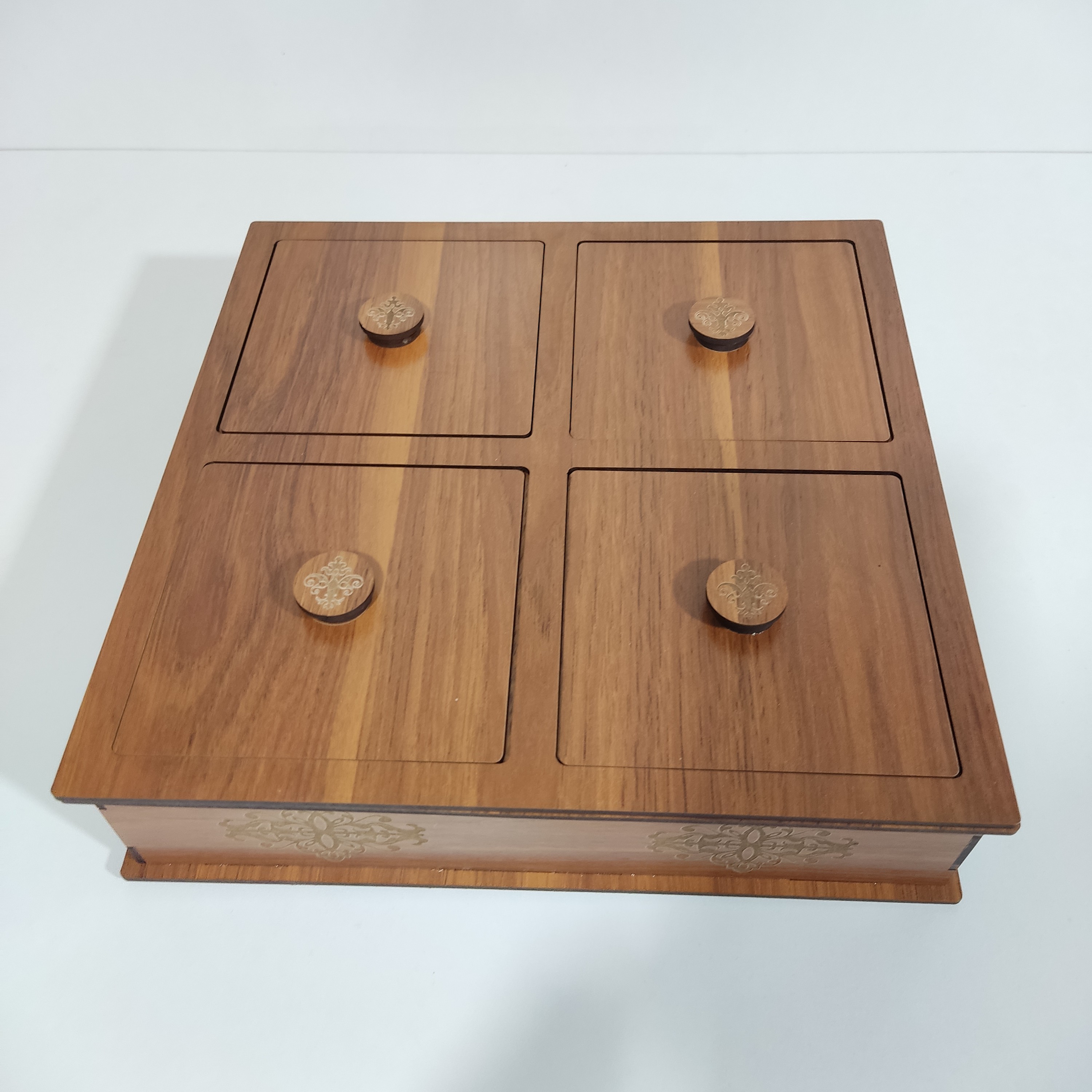 آجیل خوری 4 قسمتی با طرح اسلیمی همراه با درب چوبی ام دی اف 3 میل مبلمونسرا مدل 265631