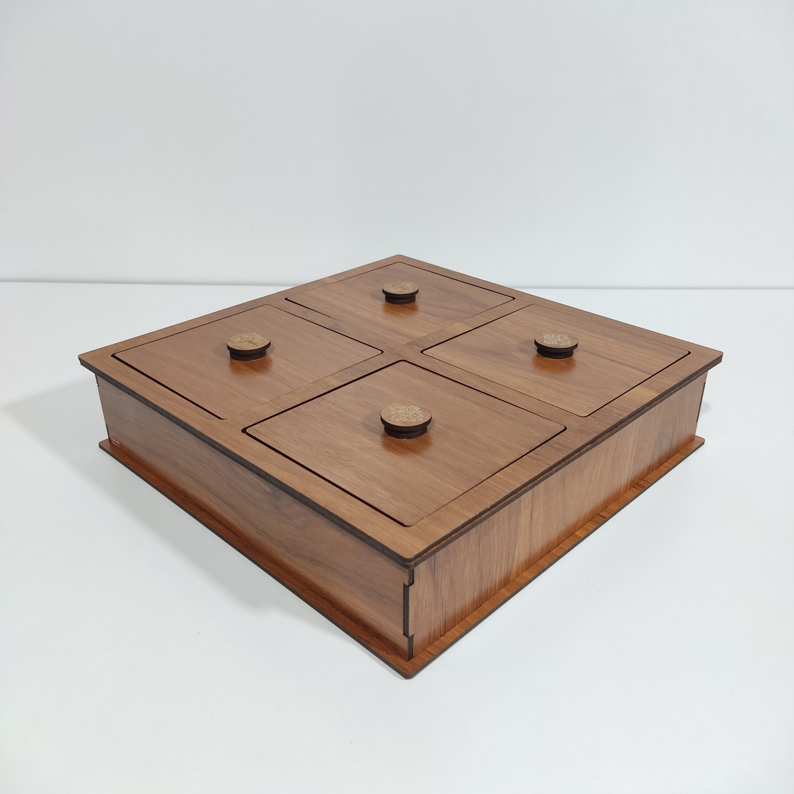 آجیل خوری 4 قسمتی همراه با درب چوبی ام دی اف 3 میل مبلمونسرا مدل 265855