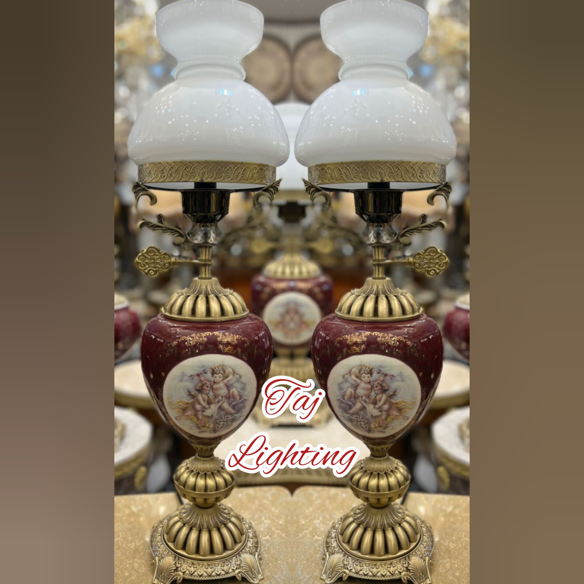 💥قیمت درج شده ، قیمت هر عدد چراغ می باشد جنس حباب : بلور رنگ حباب : سفید جنس وسط تنه : چینی رنگبندی وسط تنه : سفید، زرشکی، سورمه ای ، فیروزه ای ، یشمی ، صورتی ، مغز پسته ای جنس پایه برنز با آبکاری آنتیک
