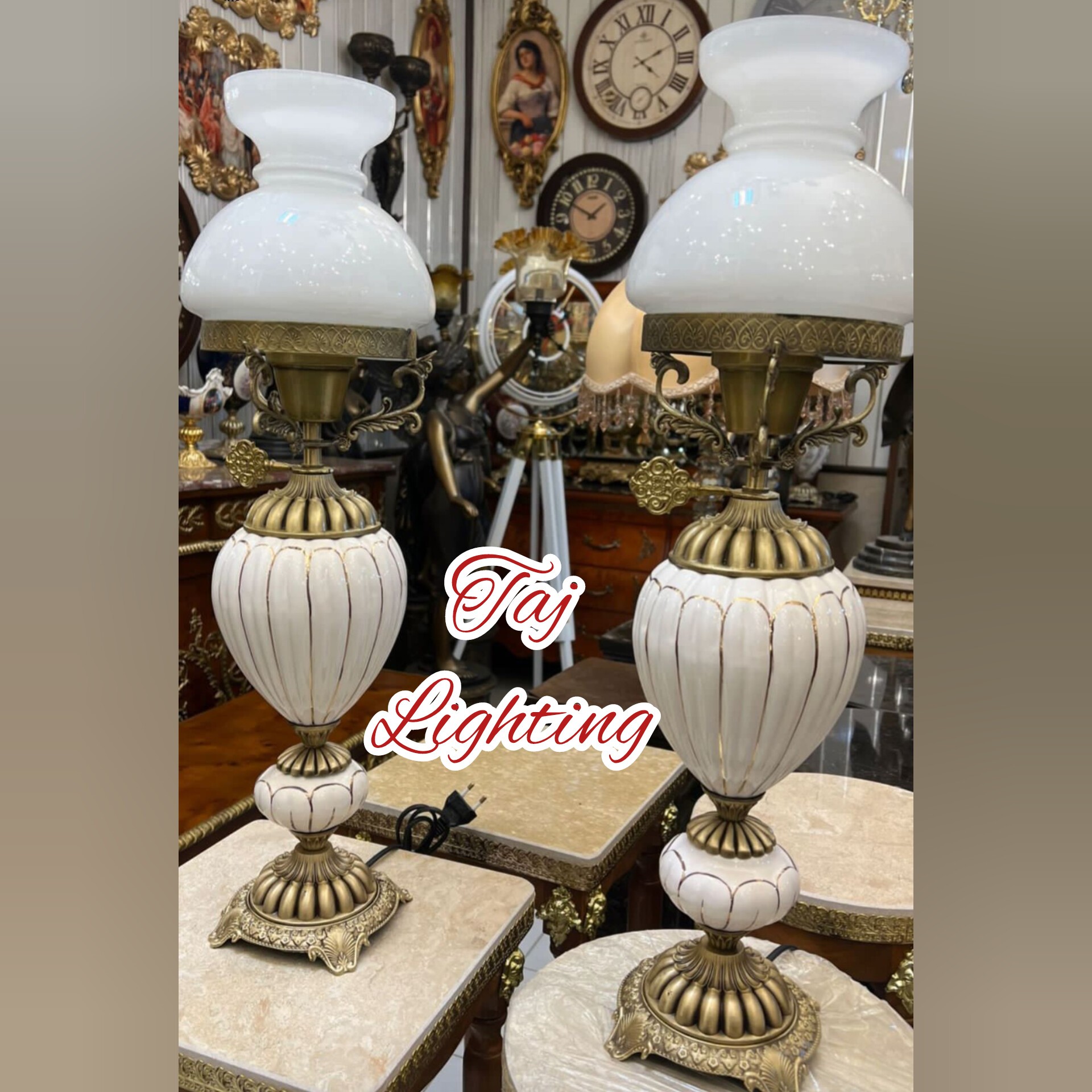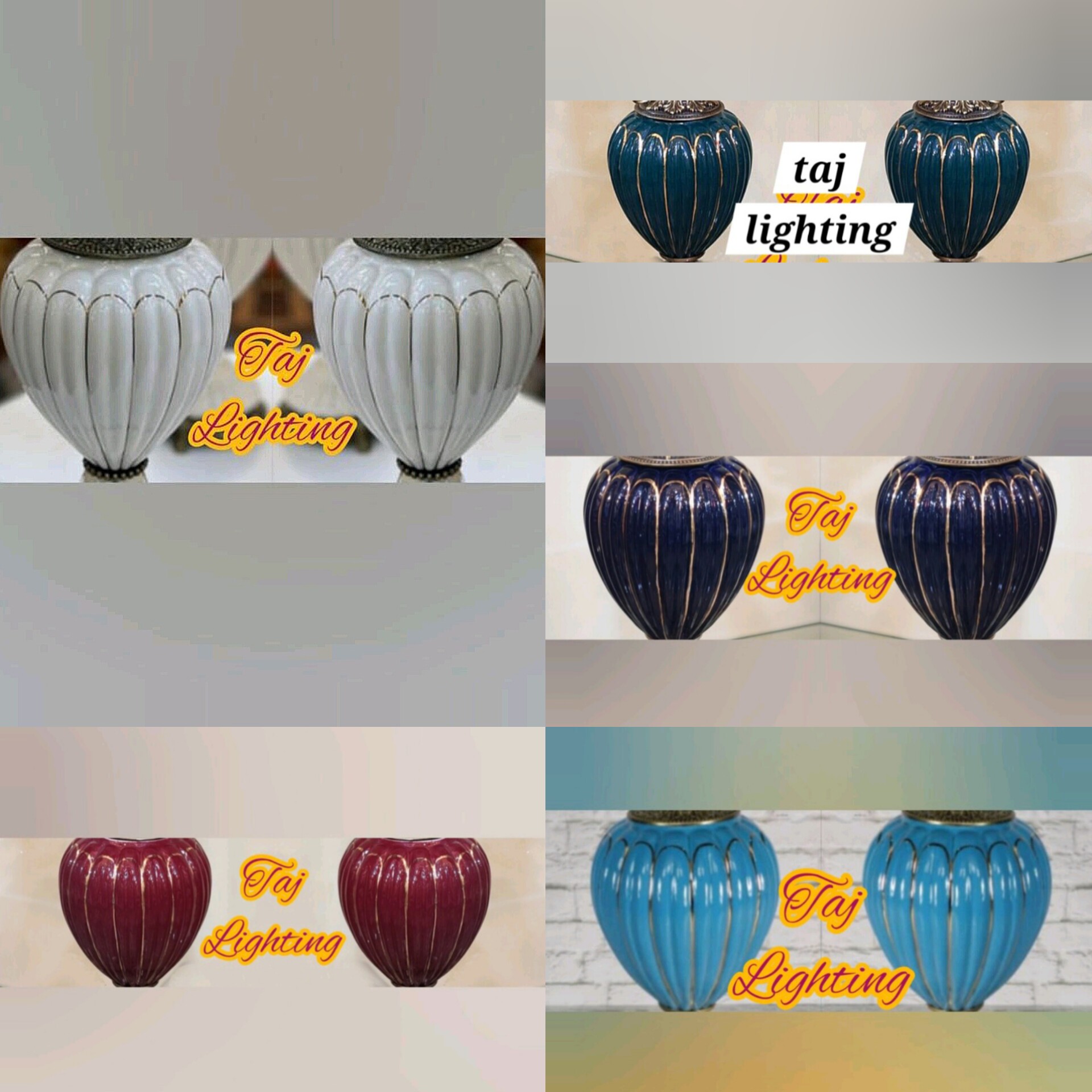 💥قیمت درج شده ، قیمت هر عدد چراغ می باشد جنس حباب : بلور رنگ حباب : سفید جنس وسط تنه : چینی رنگبندی وسط تنه : سفید، زرشکی، سورمه ای ، فیروزه ای ، یشمی جنس پایه برنز با آبکاری آنتیک