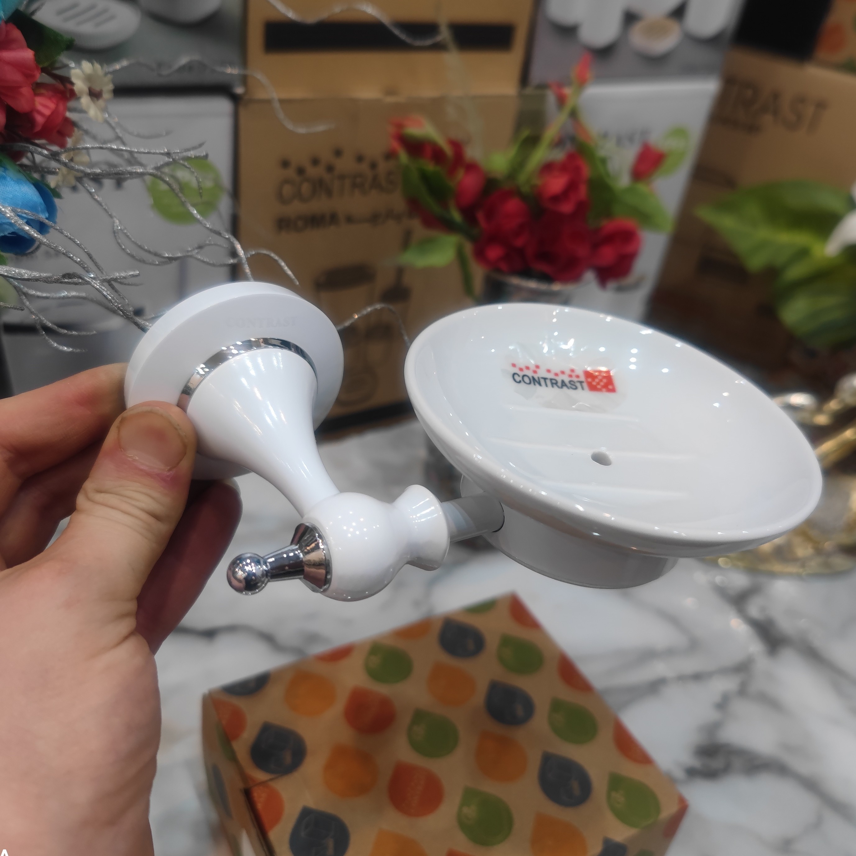 پایه ساخته شده از استیل و برنج وارداتی برند کنتراست رنگ سفید کروم و جاصابون سرامیکی