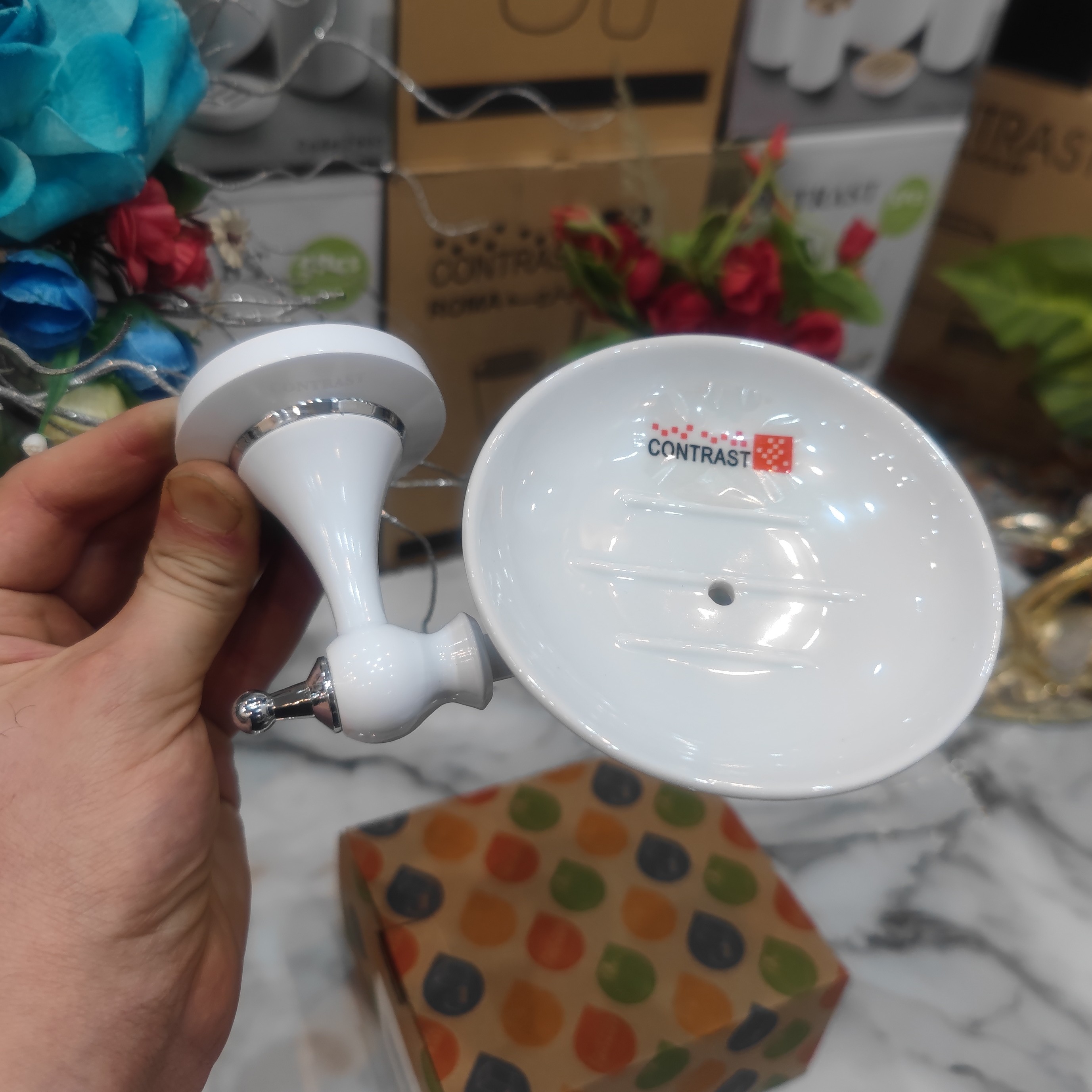 جای صابون دیواری وارداتی برند کنتراست رنگ زیبا و شکیل و جذاب استیل سفید کروم