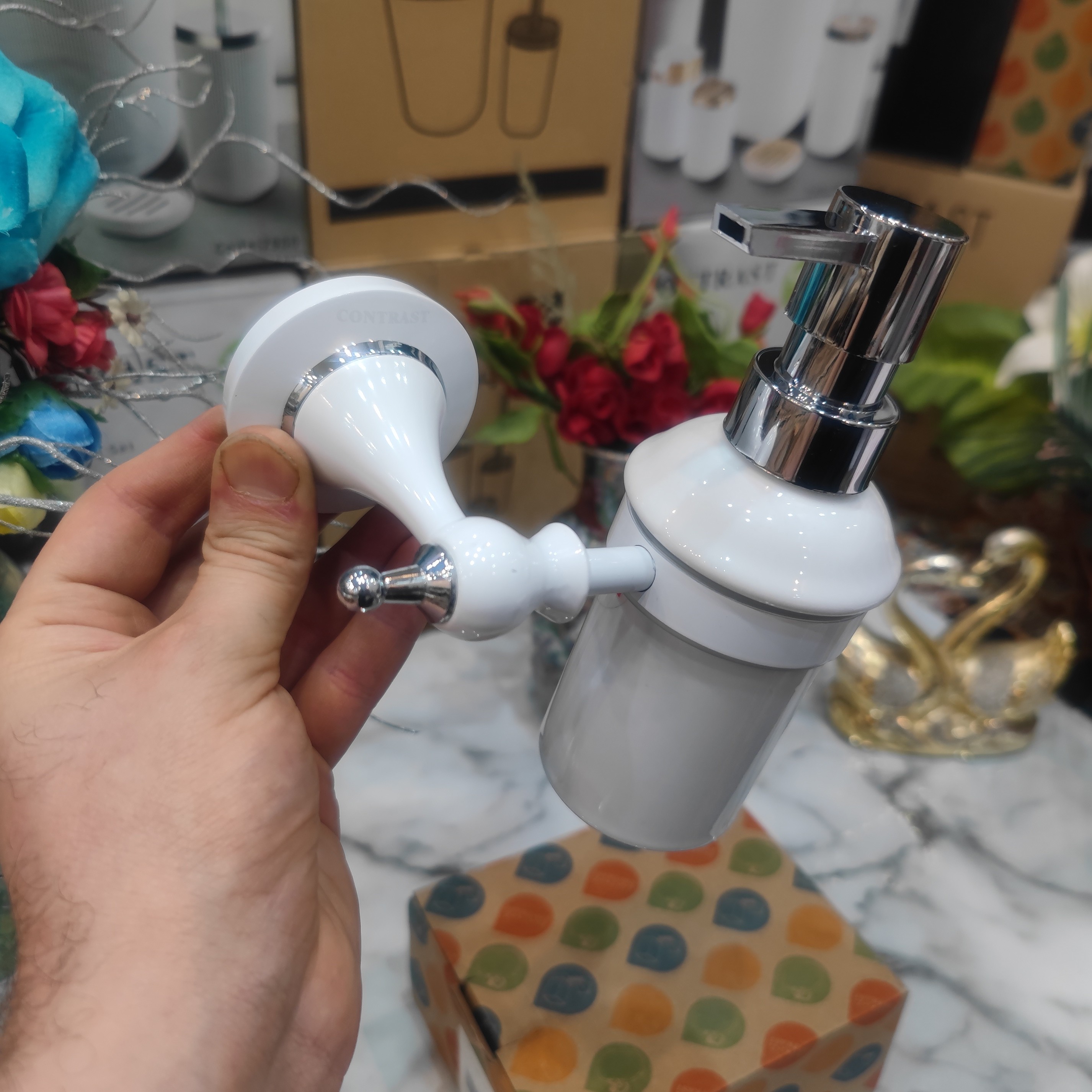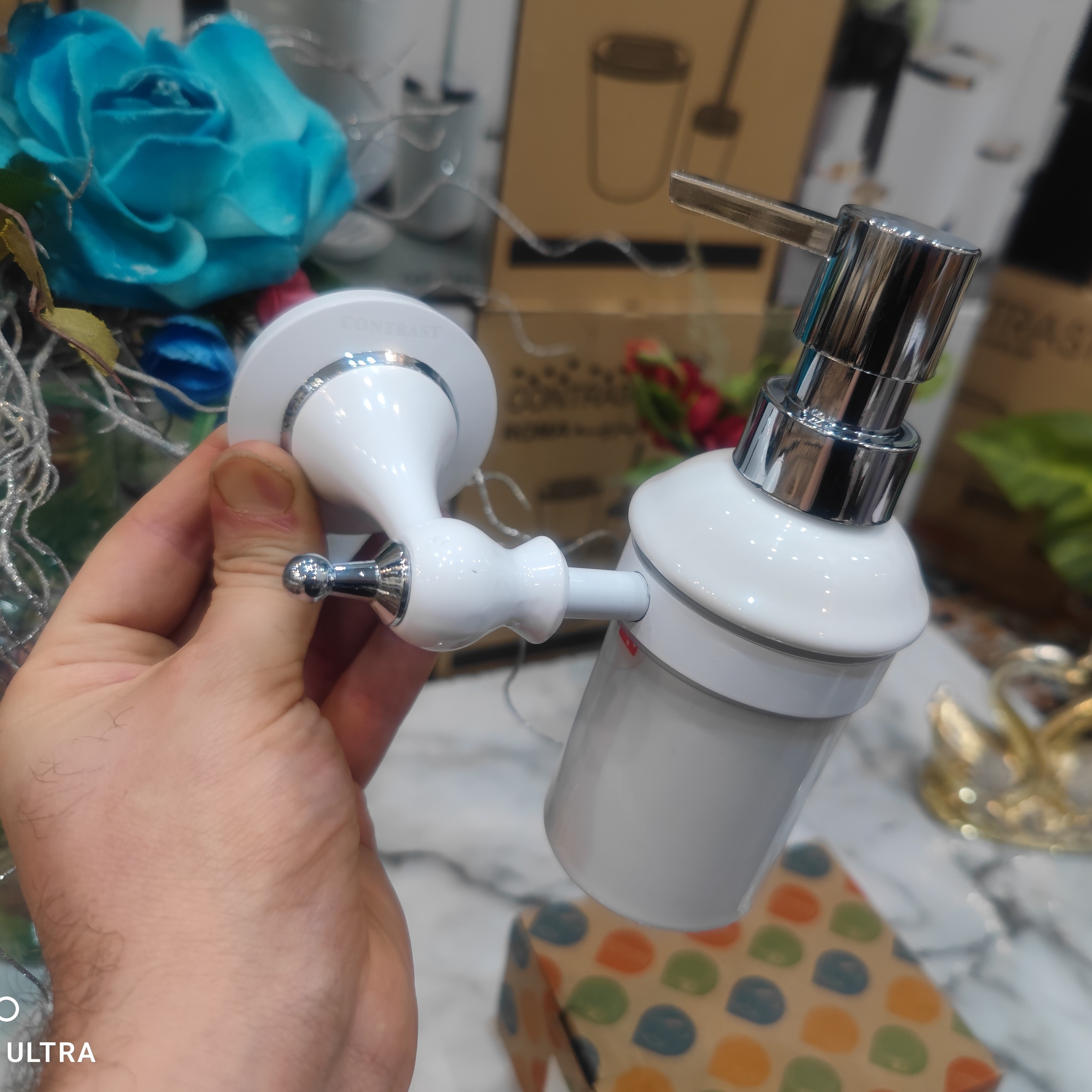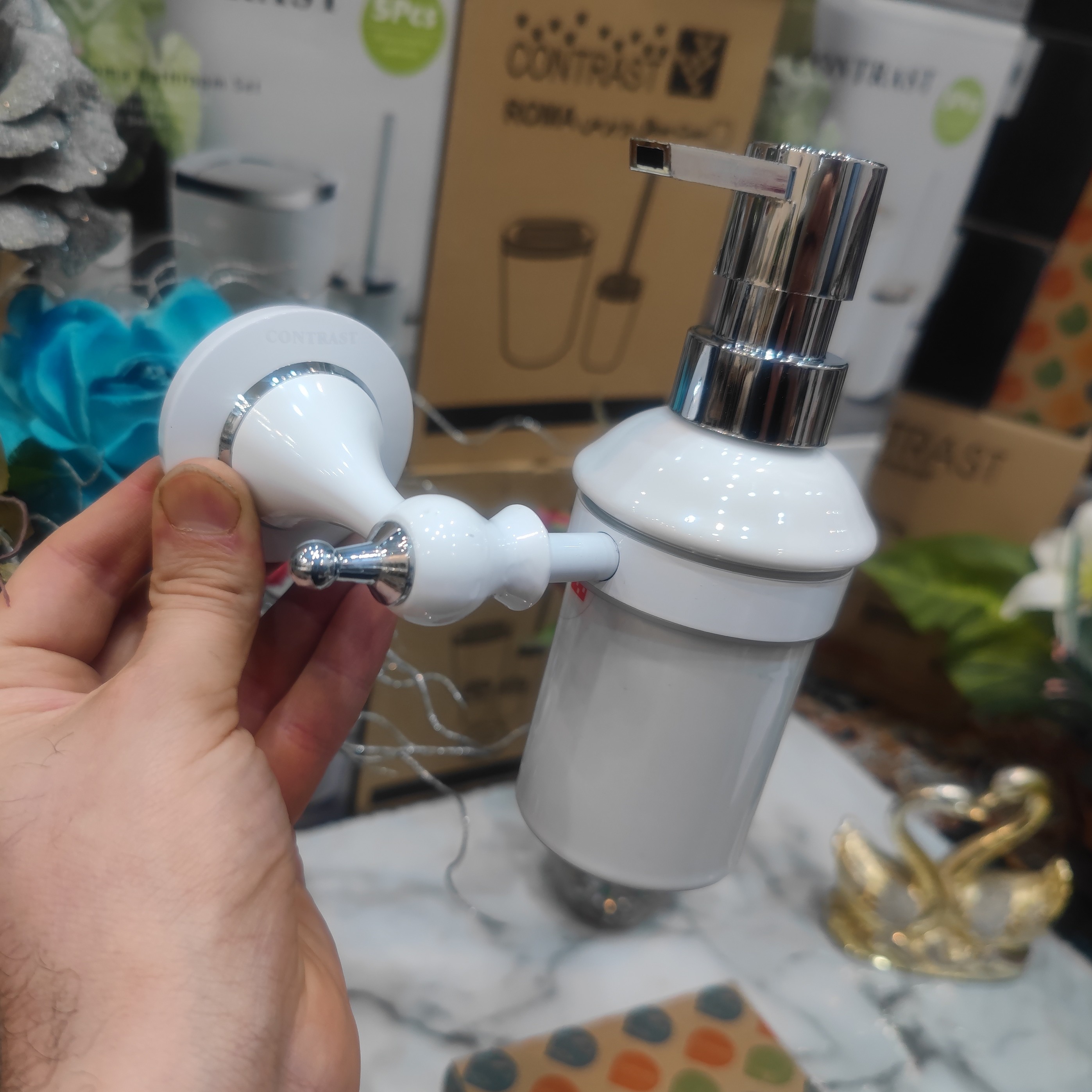 جای مایع دیواری وارداتی برند کنتراست رنگ سفید کروم نو آکبند و بسیار زیبا و شکیل و جذاب