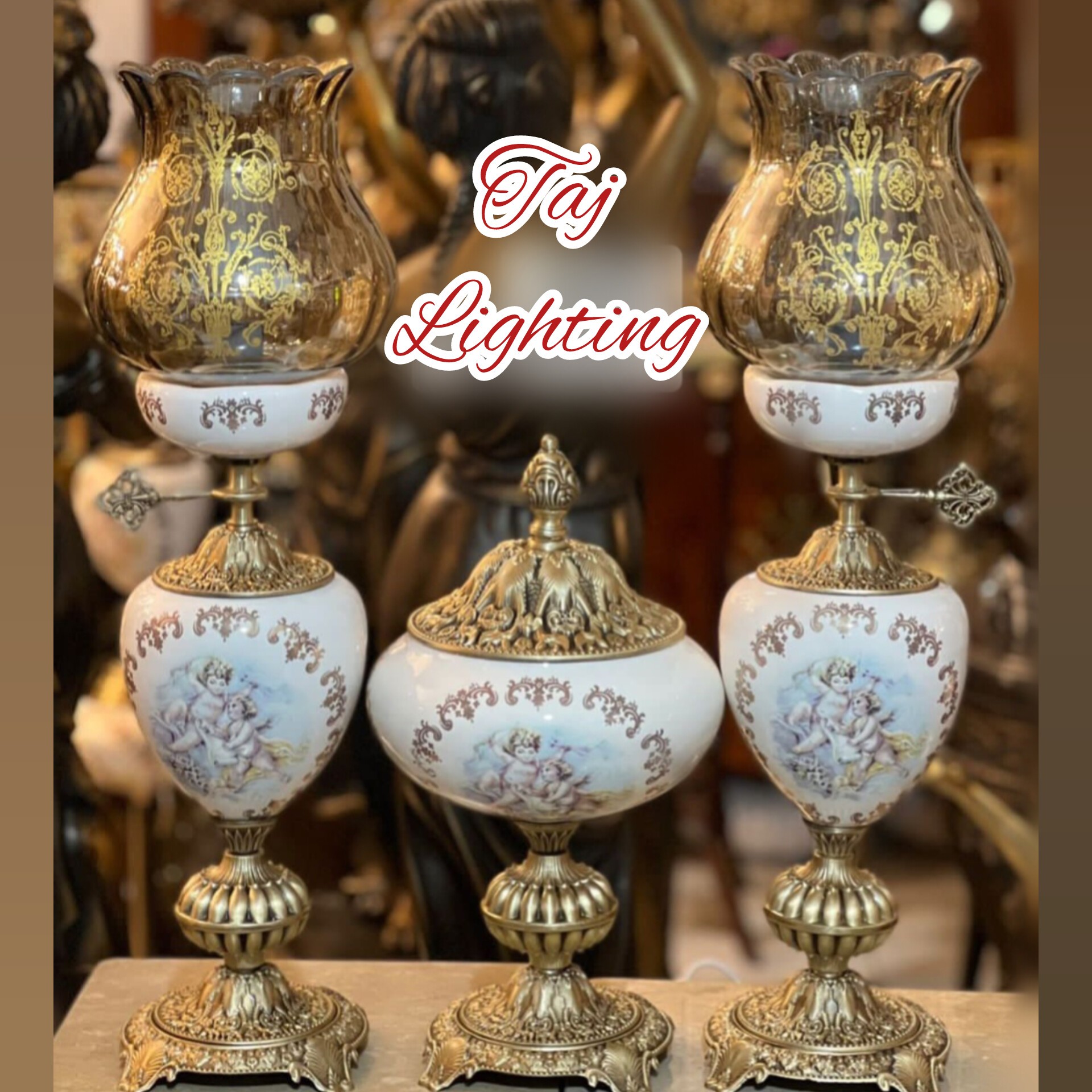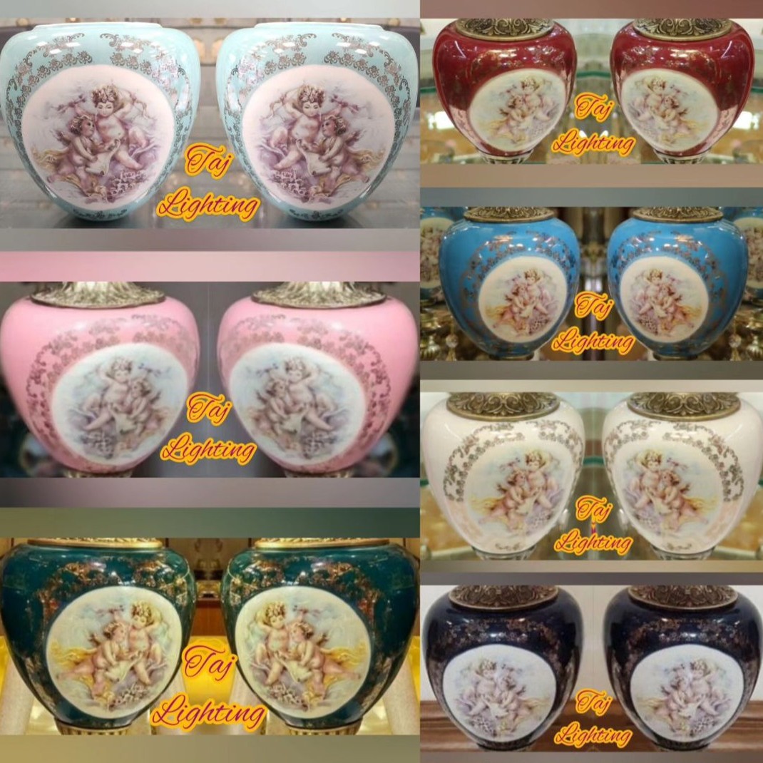 💥قیمت درج شده ، قیمت ست سه تیکه کامل می باشد جنس لاله : بلور رنگ لاله : شامپاینی گل دار جنس وسط تنه : چینی رنگبندی وسط تنه : سفید، زرشکی، سورمه ای ، فیروزه ای ، یشمی ، صورتی ، مغز پسته ای جنس پایه برنز با آبکاری آنتیک
