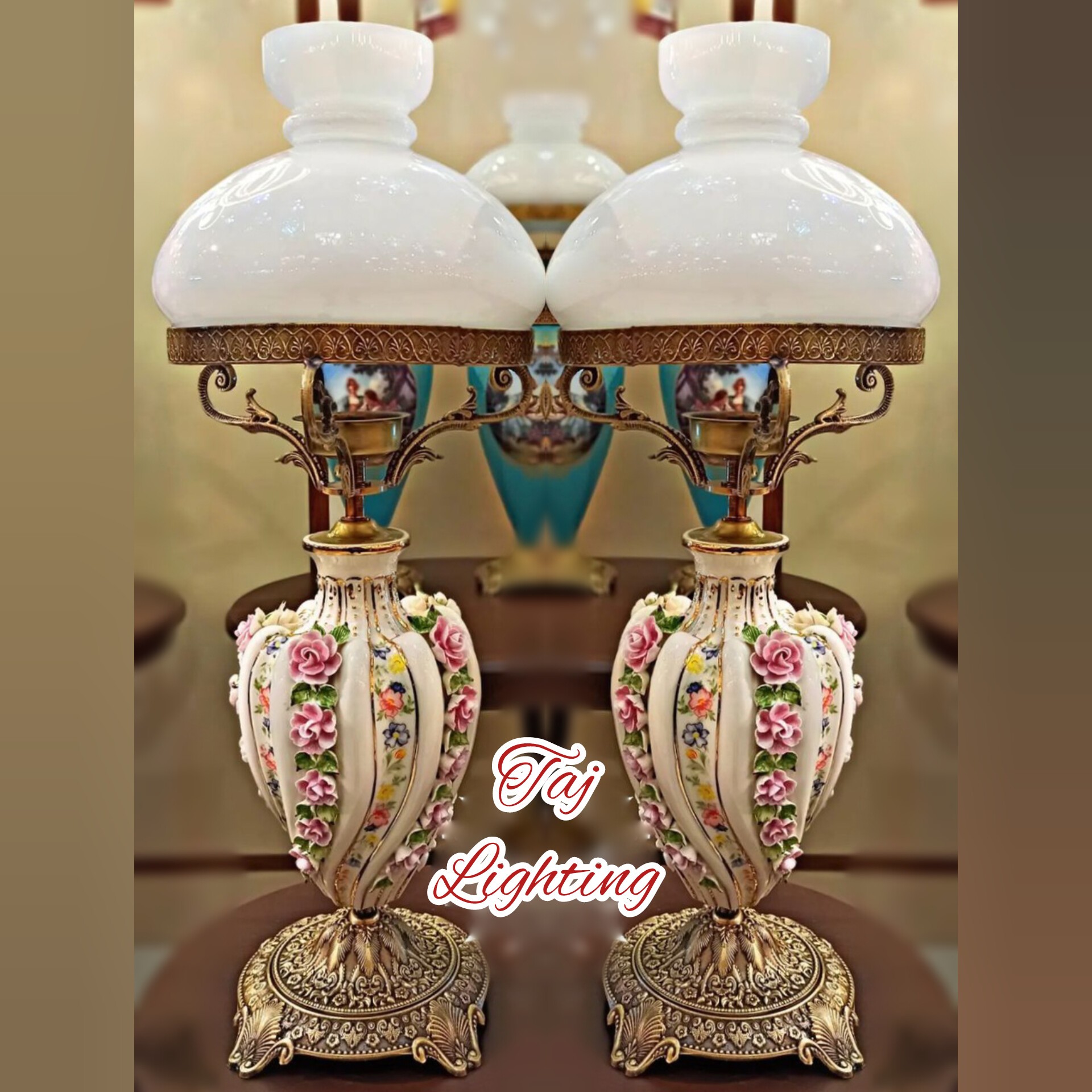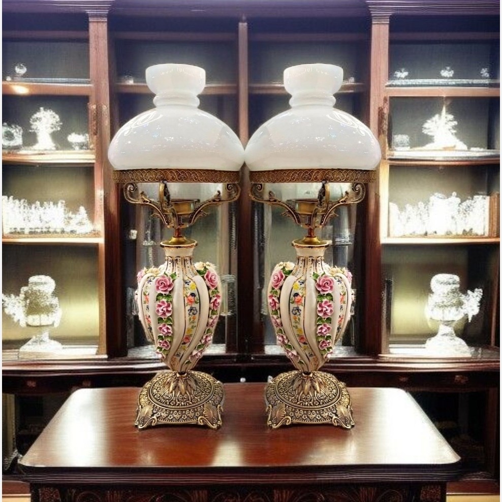💥قیمت درج شده ، قیمت هر عدد چراغ می باشد جنس حباب : بلور رنگ حباب : سفید جنس وسط تنه : چینی جنس پایه برنز با آبکاری آنتیک