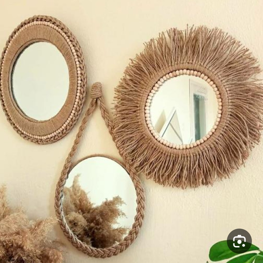 اینه دکوراتیو دستبافت کنفی و رافیا مبلمونسرا مدل 262644