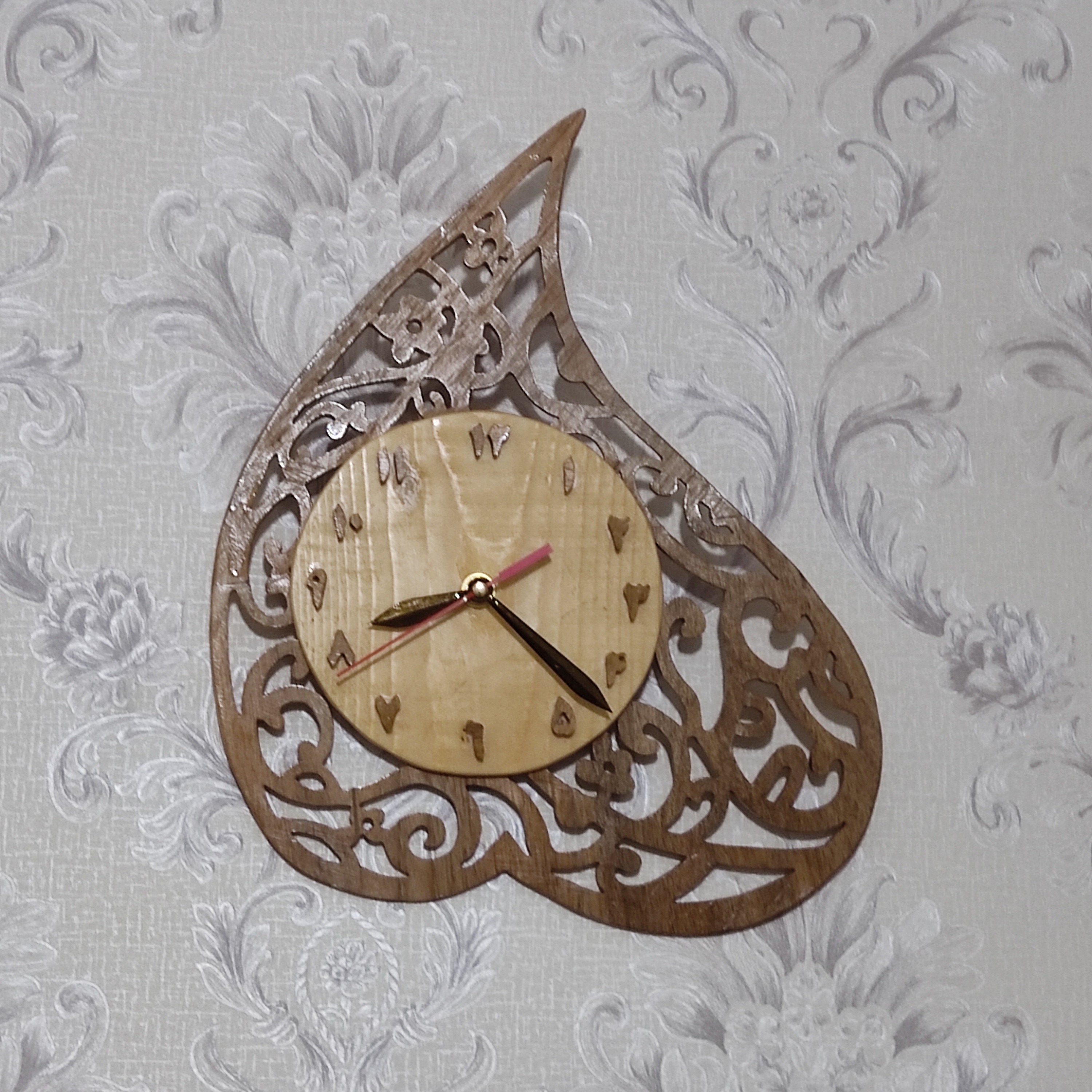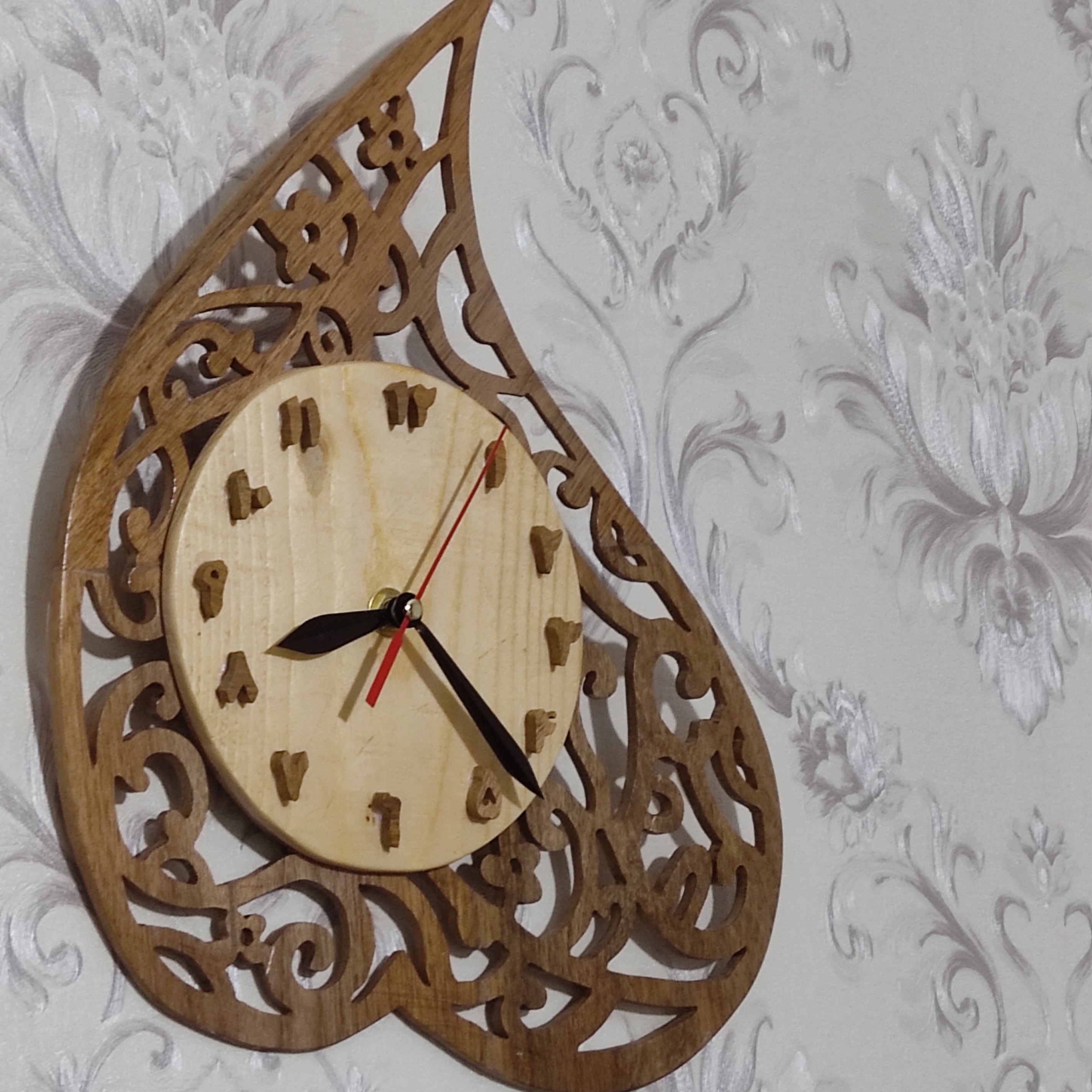 ساعت معرق چوب هنر دست میباشد که با استفاده از چوبهای مناسب معرق کاری ساخته شده است . این ساعت با استفاده از استند مناسب قابل استفاده به عنوان ساعت رومیزی نیز میتواند باشد. کل کار به منظور پیشگیری از ایجاد آفت در چوب با کیلر پوشش داده شده است. ارتفاع کار 30 و عرض کار در بیشترین عرض 25 سانتیمتر و قطر صفحه ساعت 15 سانتیمتر است . در صورت تمایل امکان دکوپاژ عکس مورد نظر شما روی صفحه و همچنین نوشتن متن وجود دارد که میتوانید با غرفه دار هماهنگ کنید ، هزینه موارد جانبی جداگانه محاسبه و اعلام میگردد. کلیه سفارشات معرق کاری پذیرفته میشود