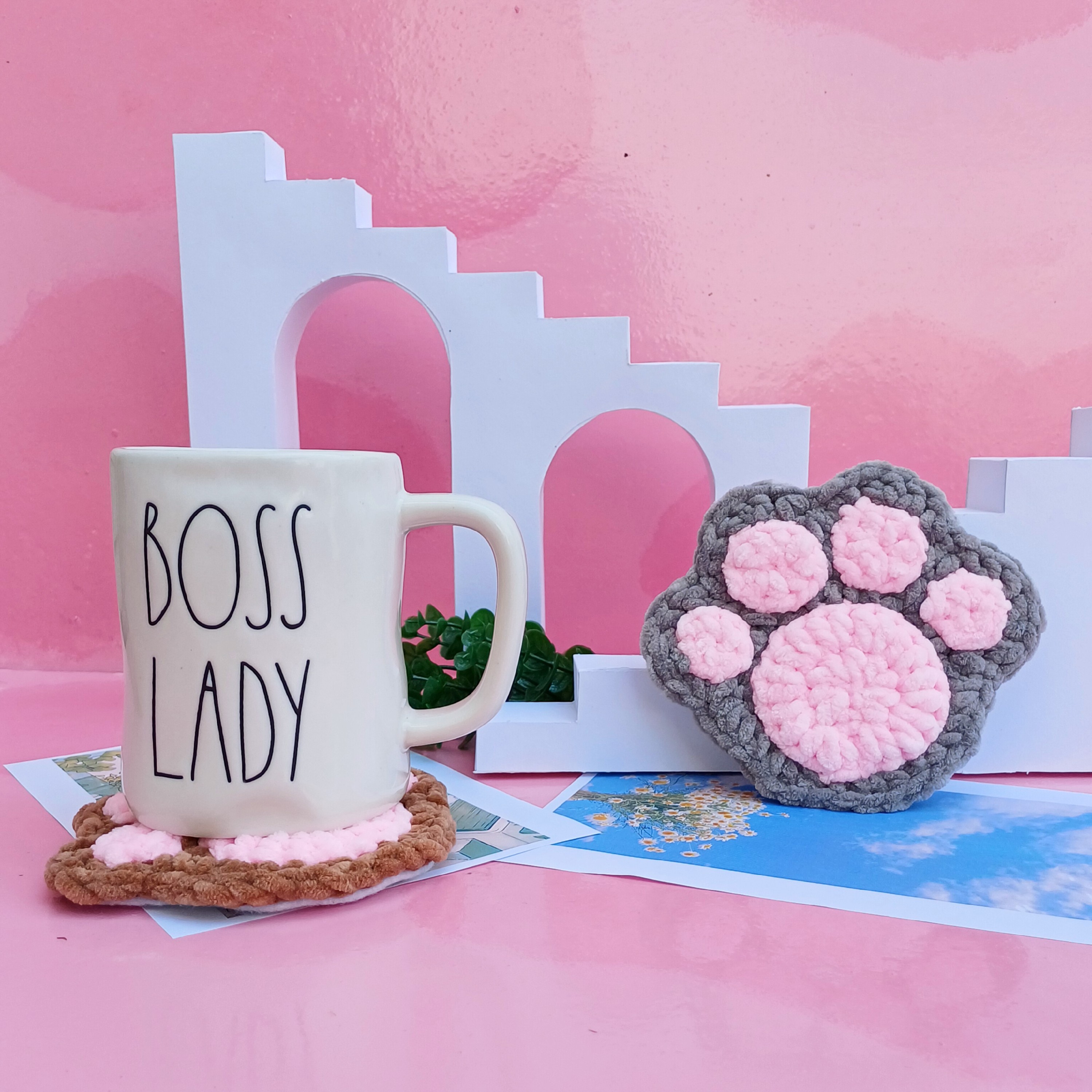 زیرلیوانی دستبافت مدل پنجه گربه مبلمونسرا مدل 300016