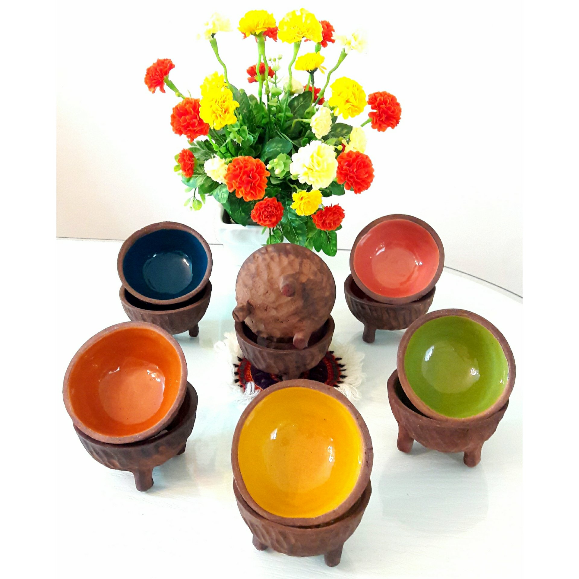 پیاله دست ساز سفالی پایه دار رنگی مبلمونسرا مدل 291868