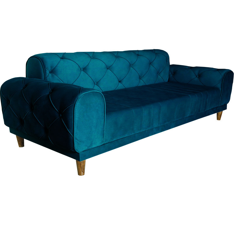 کاناپه راحتی سه نفره یک مبل راحتی برای استفاده در منزل، محیط کار، فضاهای پذیرایی مانند تالارها و هتل ها و همچنین فضای انتظار است. تنوع بالای روکش های ارائه شده برای این مبل راحتی سه نفره باعث شده تا خریدار بتواند متناسب با فضای موردنظر، رنگ انتخابی خود را سفارش دهد. ساختار این مبل سه نفره راحتی با کلاف چوبی از جنس چوب صنوبر ساخته شده که استحکام قابل قبولی را برای این مبل ایجاد کرده است. طراحان این کاناپه راحتی برای پایه های آن چوب مستحکم، بادوام و زیبای راش را در نظر گرفته اند.