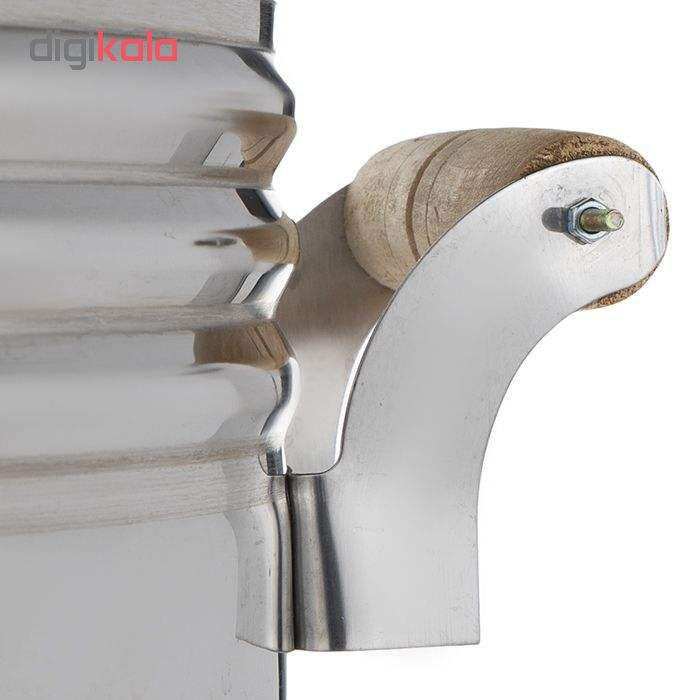 چای نوشیدنی محبوب و دلچسب ما ایرانیهاست که از زمانهای قدیم در خانههایمان بوده است. استفاده از سماور طعم و عطر خوبی به چای میدهد و بهترین وسیله برای دمکردن چای است. بین انواع مختلف سماور، سماور گازی به علت مصرف کم انرژی مناسب بسیار رایج و پرطرفدار است. سماور صنعتی یک سماور بزرگ 60 لیتری بوده که برای مجالس و مراسمها بسیار کاربردی است. برای تعداد نفرات بالا سماورهای 6 و 8 لیتری جوابگو نیست و باید از سماور با ظرفیت بالا استفاده کرد. این محصول بدنهای از جنس استیل و دستههای چوبی دارد که هنگام حملونقل آن دستتان نسوزد. ابعاد این مدل 60 × 60 × 70 سانتیمتر بوده و وزنی معادل 7.5 کیلوگرم دارد. این سماور به گونه ای ساخته شده است که امکان روشن کردن شمعک را داشته باشد و پس از آن بتوان از دستگیره برای روشن و خاموش کردن سماور استفاده کرد. همچنین از طریق دستگیره امکان کنترل دمای آب وجود دارد و از طریق پیچ تعبیه شده در کنار دستگیره می توان میزان شعله ی شمعک را تنظیم نمود. در این مدل سماور می توان به راحتی قوری چایی را برای دم کشیدن روی جام درب قرار داد و از شیر دسته گازی برای خروجی آبجوش استفاده کرد. سماور صنعتی 60 لیتری قابلیت پذیرایی 300 نفر را در هر وعده فراهم می کند. از نکات دیگر اینکه بر روی بدنه دو شیر خروجی تعبیه شده تا امکان استفاده سریعتر فراهم شود. در هنگام اتصال شلنگ گاز به ورودی گاز سماور حتما نکات ایمنی را رعایت کرده و از بست های فلزی ویژه استفاده کنید.