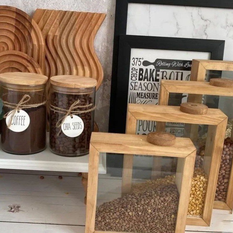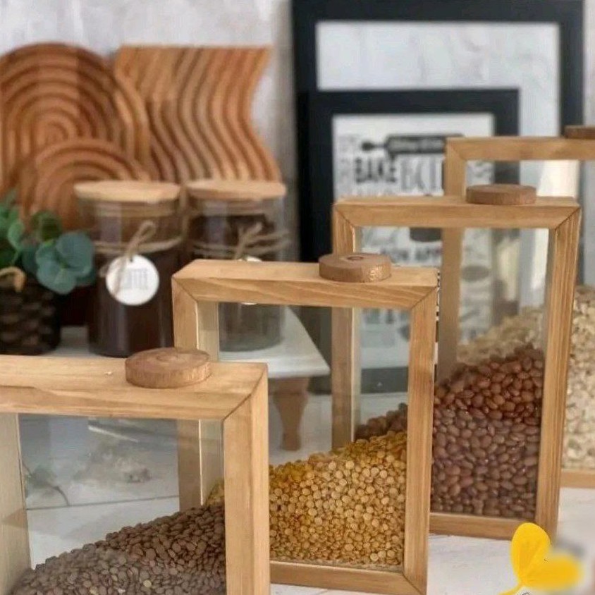 بانکه حبوبات مکعبی بانکه حبوبات چوبی مکعبی ،ترکیبی از جنس شیشه و چوب روس درب چوب پنبه مبلمونسرا مدل 288020