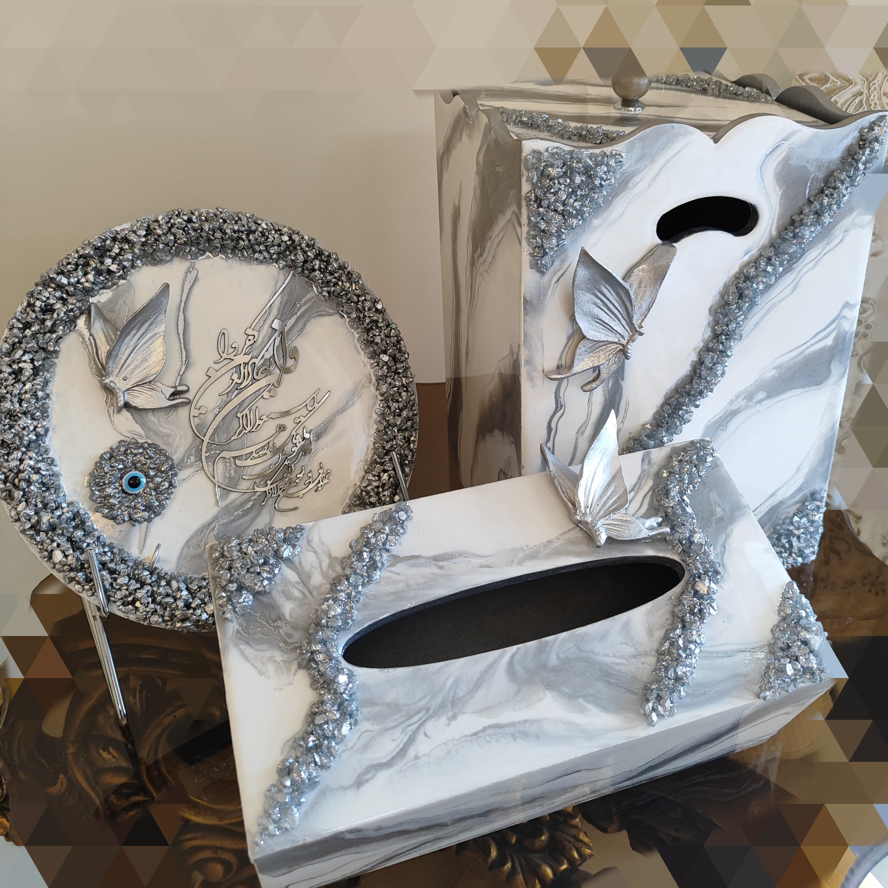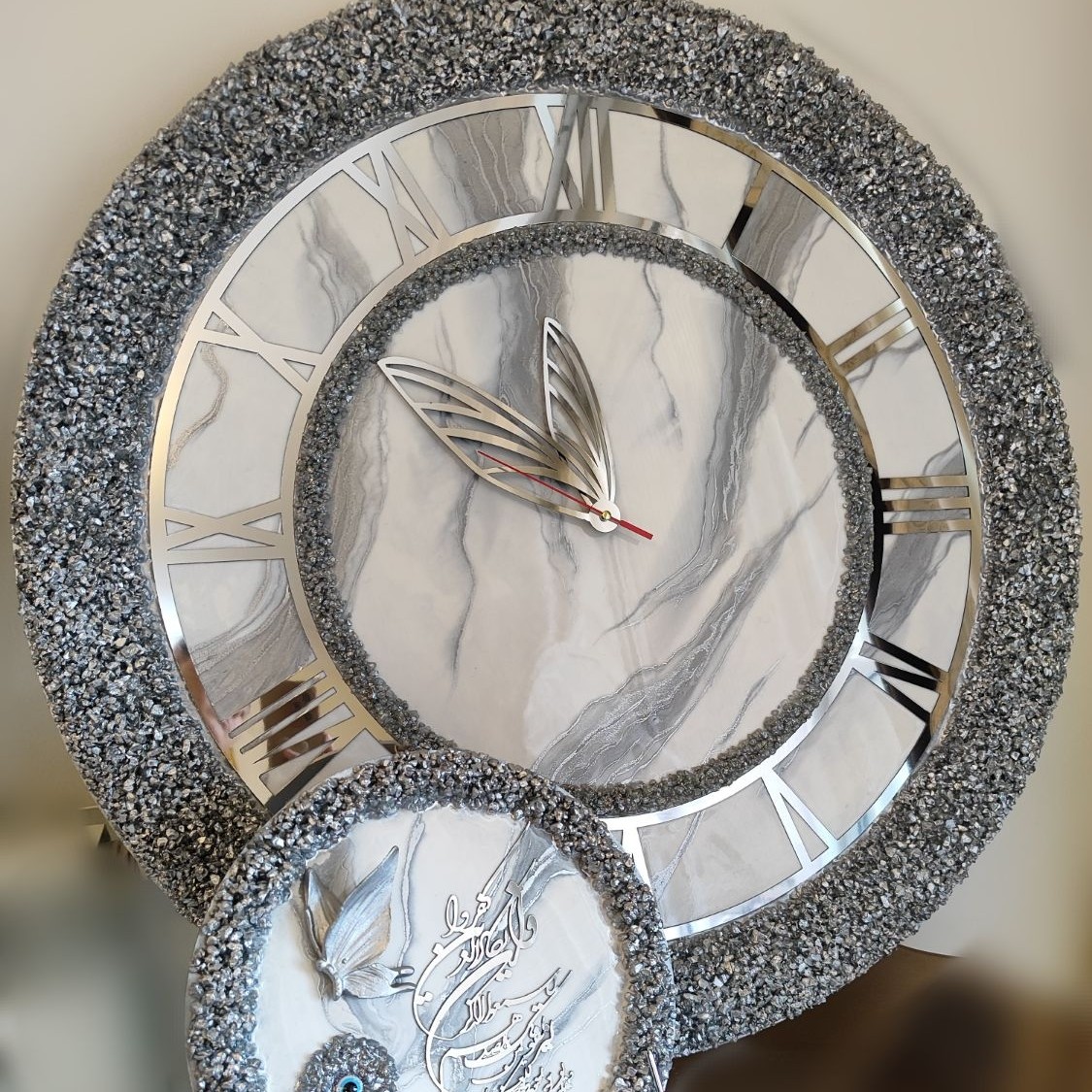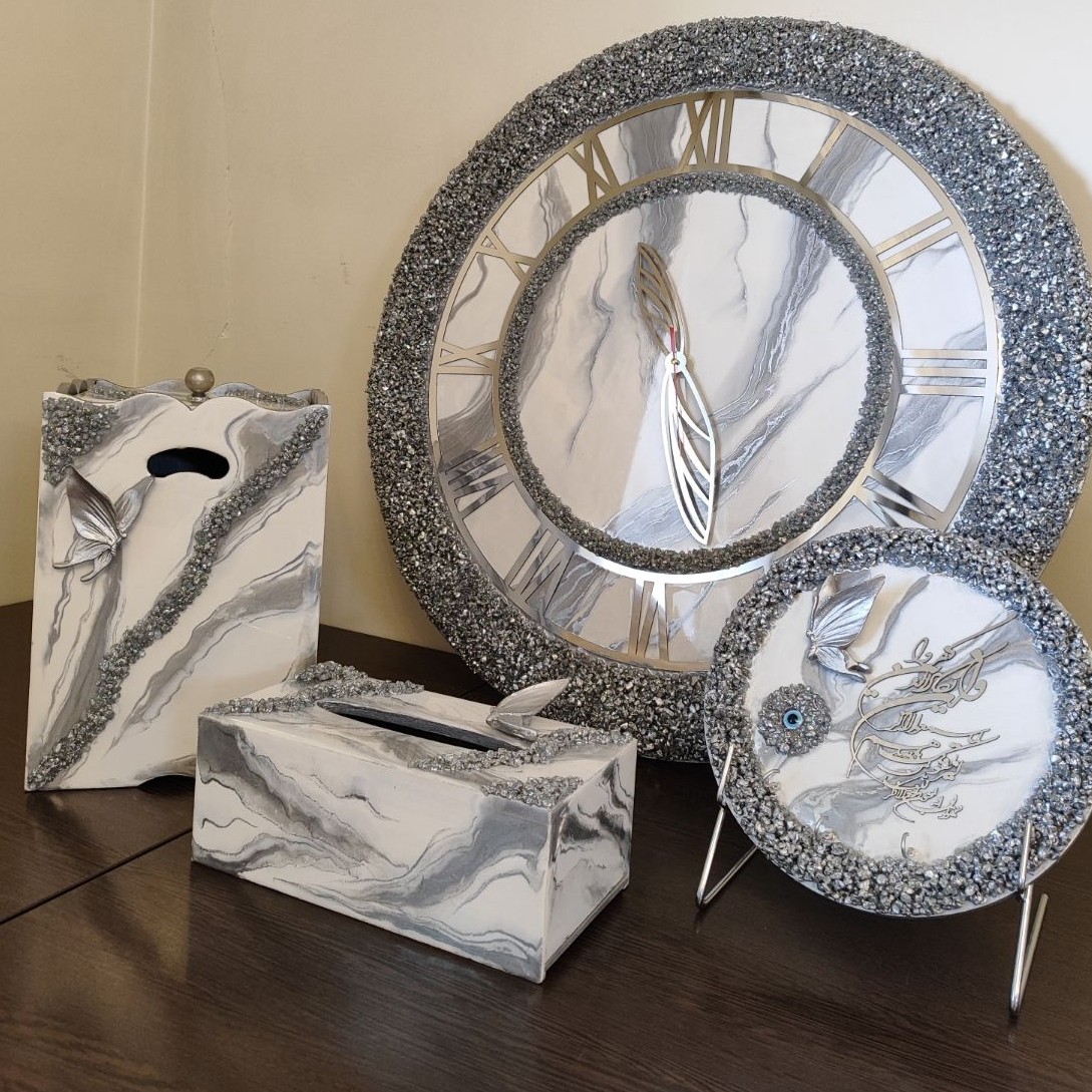 ساعت دیواری رزینی قطر 70 کریستالی با ست کامل جهیزیه مبلمونسرا مدل 239770