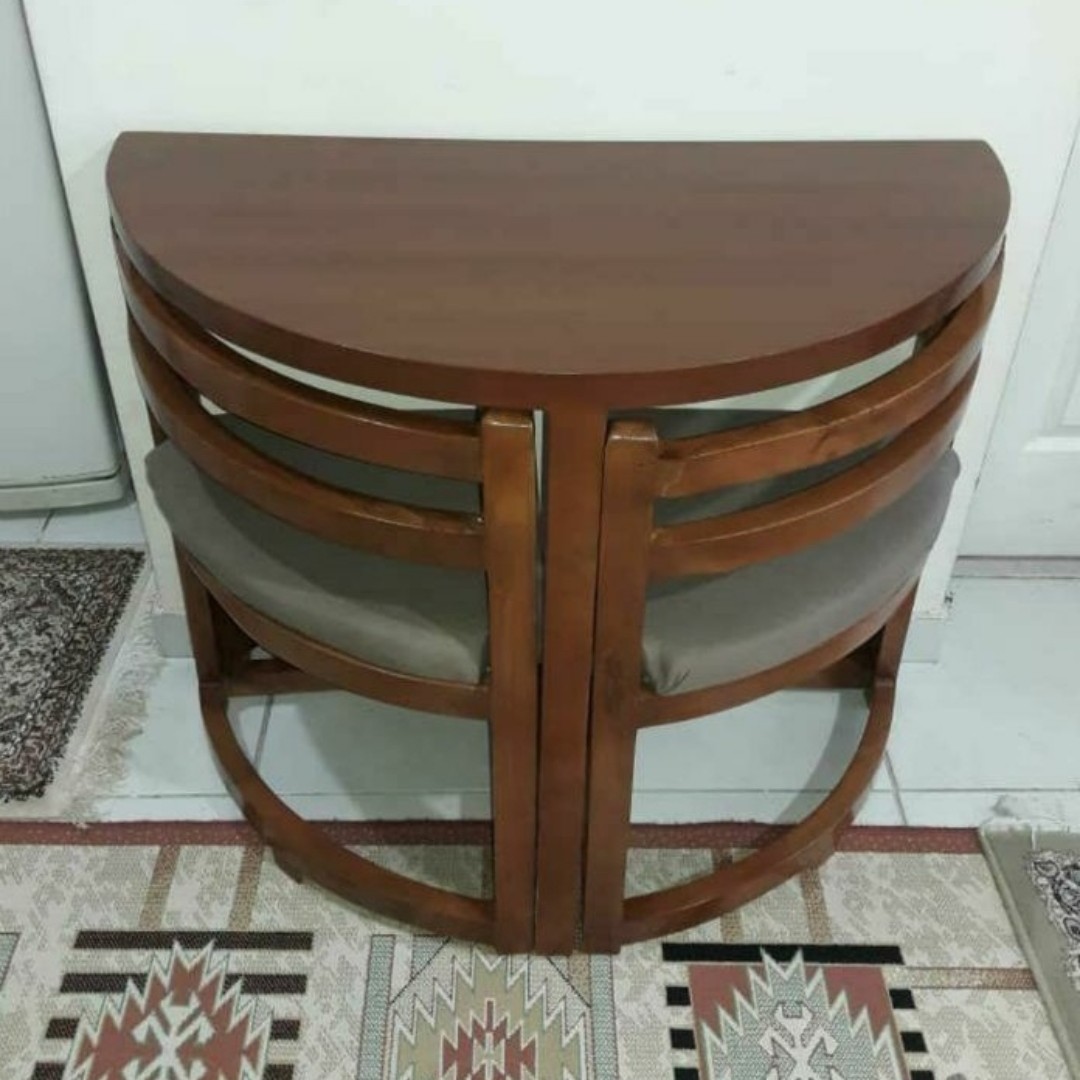 محصول دیگر از مبلمان ایپک میز غذاخوری دونفره کمجا در دو مدل نیم دایره و مستطیل اسکلت از چوب جنگلی مرغوب و درجه یک کار شده با اسفنج 30 کیلویی رنگ بندی پارچه به انتخاب شما رنگ بندی چوب کامل