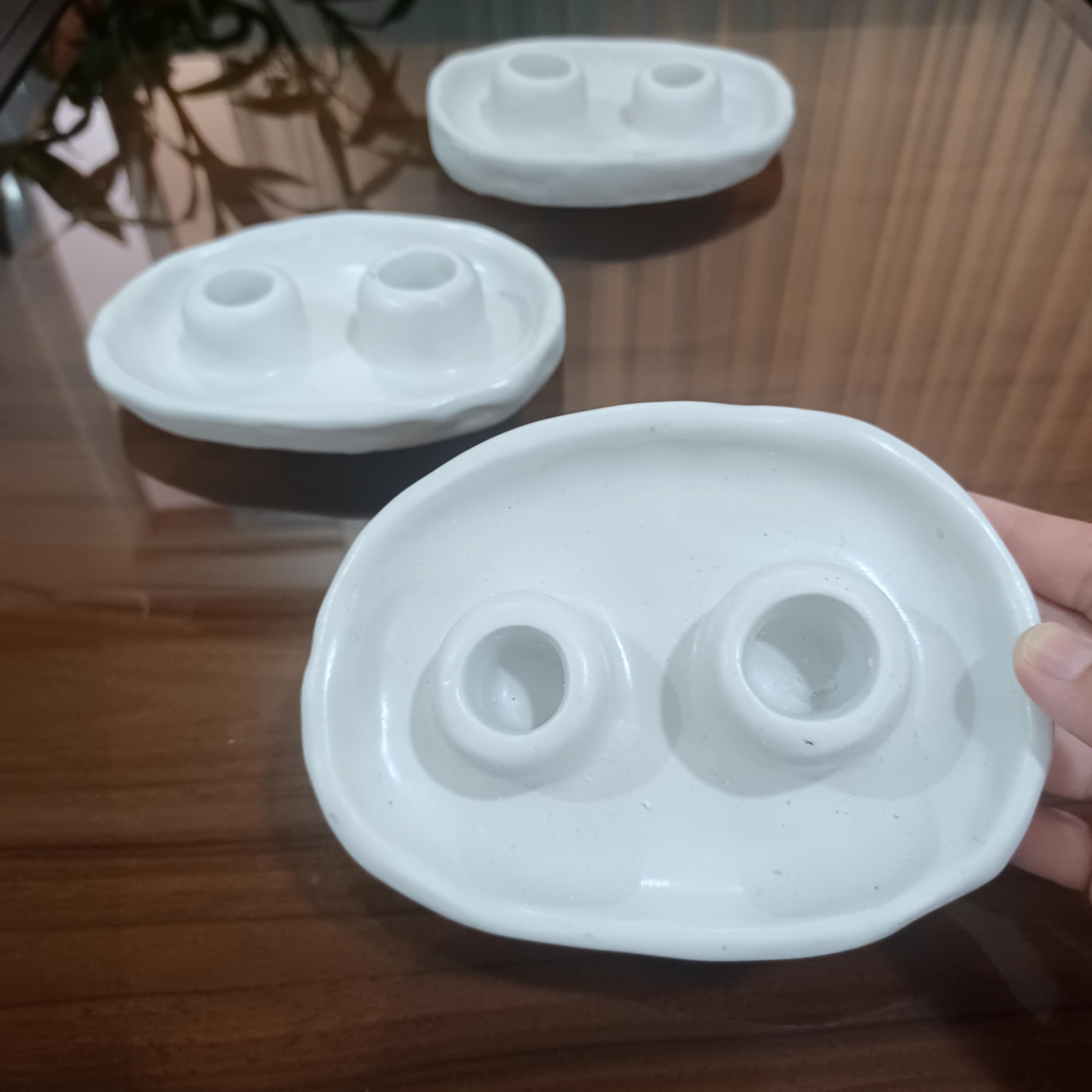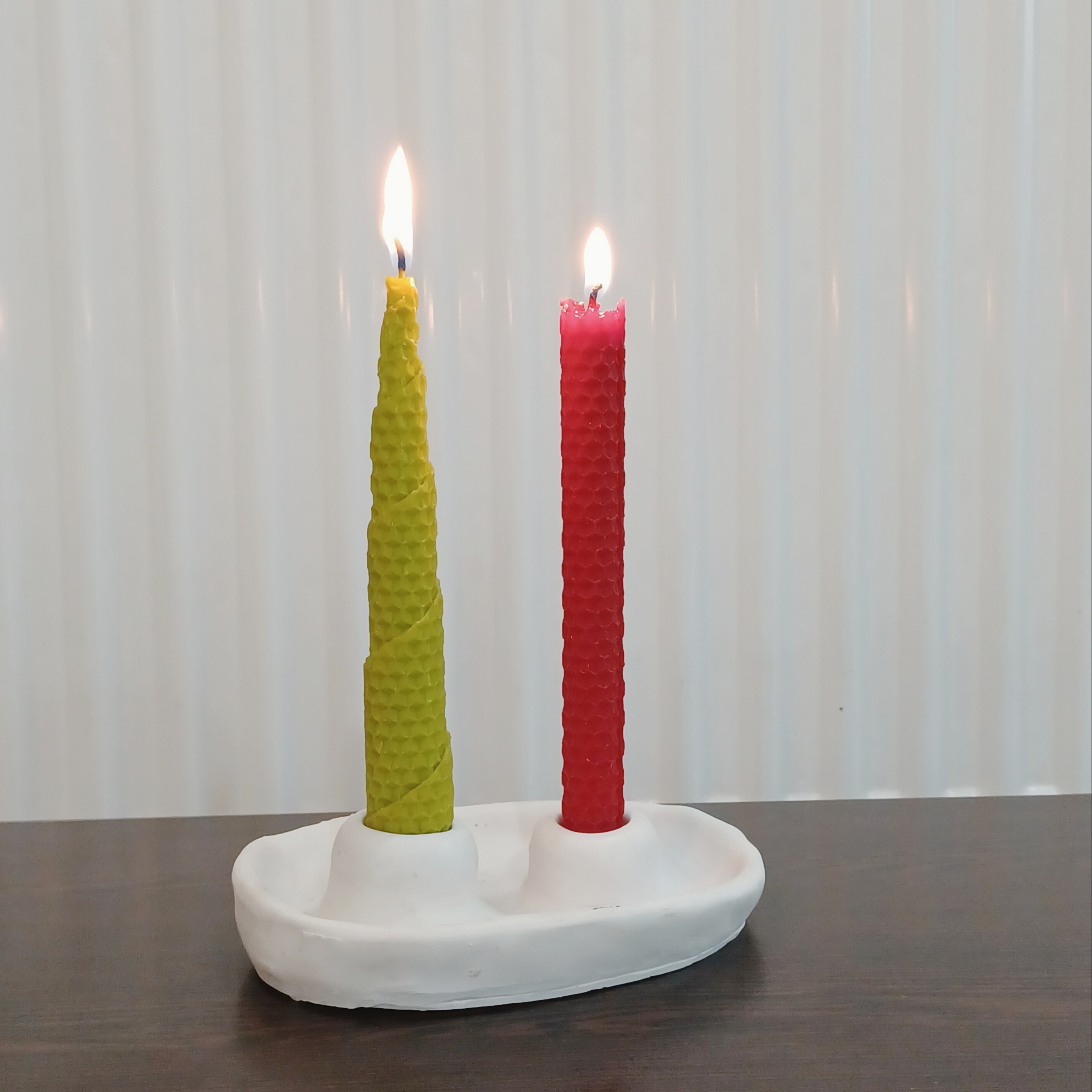 شمعدان دوشعله جاشمعی مدرن دفرمه جنس پلی استر شمعدان مینیمال دکوری شیک شمعدان مدرن مبلمونسرا مدل 280901