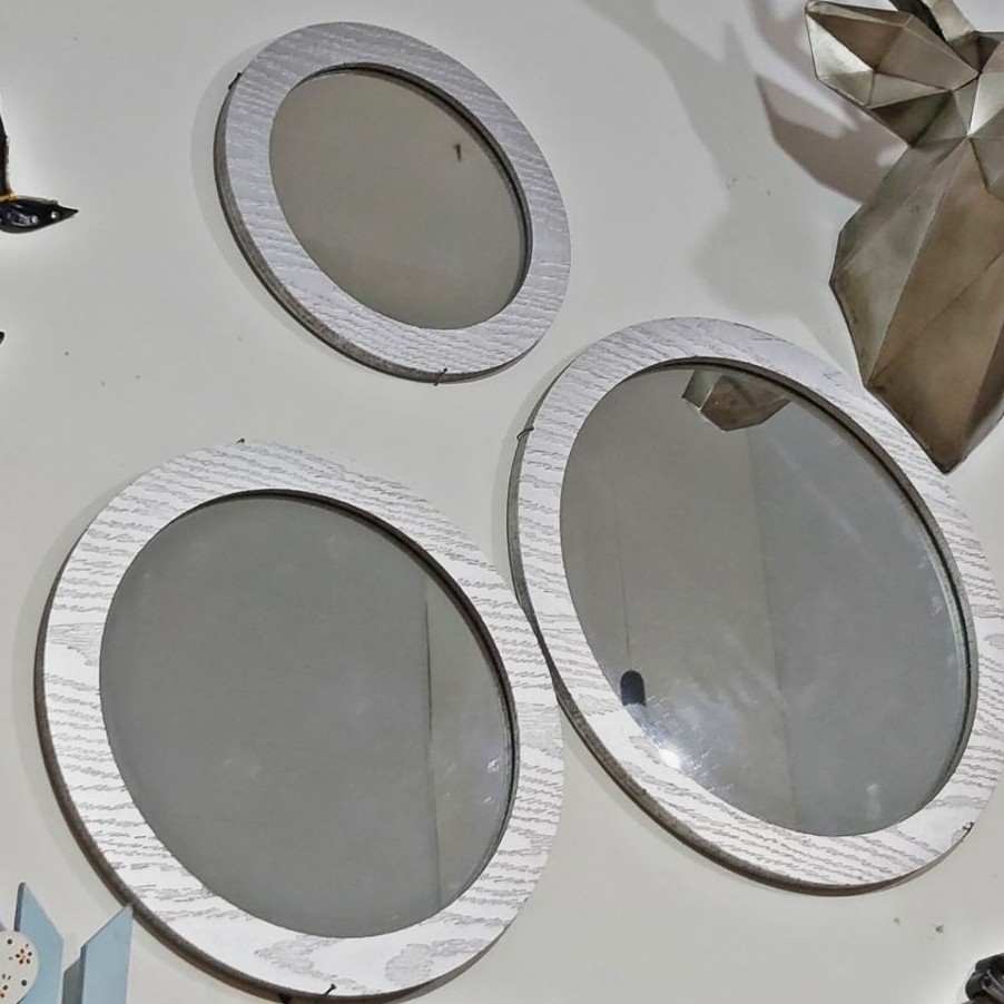 * طرح 5 تیکه گرد با هم * فقط به صورت ست 5 تیکه به فروش میرسد؛ تک آینه فروش نداریم لطفا سوال نفرمایید رنگ نقره ای دارای جای میخ جنس ام دی اف با کیفیت و شیشه درجه یک سایزبندی: 46,39,32,25,18 * پروانه جداست