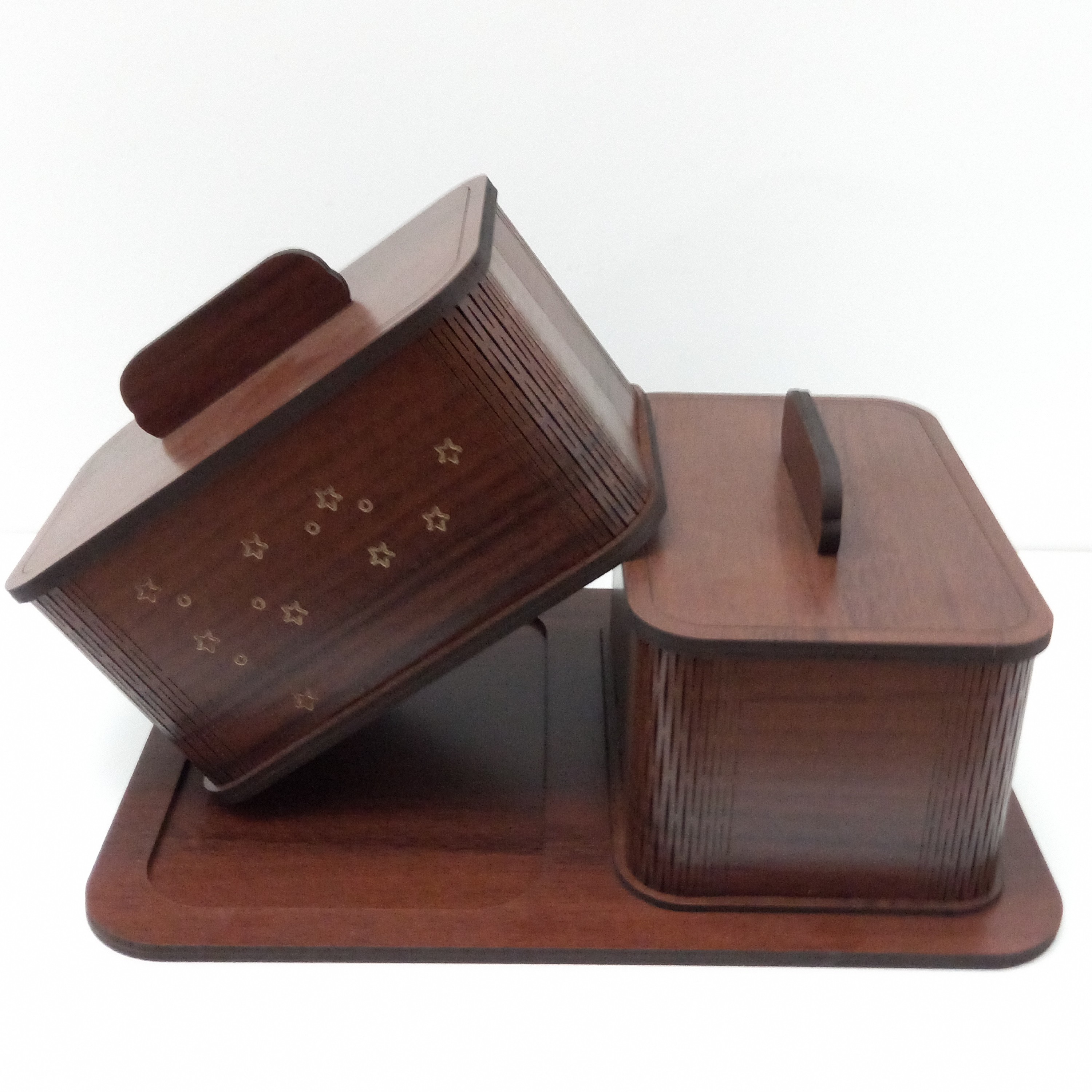 نام محصول : شکلات خوری رومیزی چوبی دو قلو سینی دار طرح ستاره امکان حکاکی و سفارشی سازی روی محصول وجود دارد