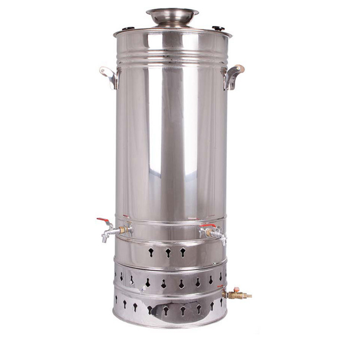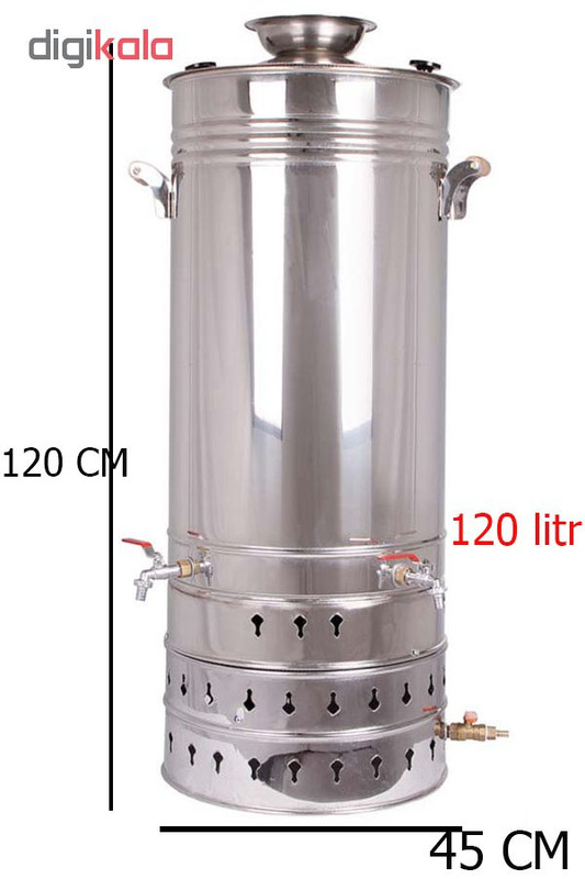 سماور گازی مدل TN-20 ظرفیت 120 لیتر که با ظرفیت 120 لیتر و بدنه استیل به طوری که داخل سماور از استیل نگیر می باشد. استیل نگیر به استیلی گفته می شود که اهن ربا جذبش نمی شود. جذب نشدن اهن ربا به این مف است که استیل سماور خالص است. ودر آن فلز آهن بکار نرفته است. تا بعد از مدتی استفاده سماور سوراخ یا زنگ نزند .این سماور مجهز به تنوره می باشد . تنوره یک لوله از جنس استیل است که داخل سماور قرار می گیرد و حرارت به غیر از دیواره ها از وسط مخزن نیز خارج می شود که موجب جوشش سریع میشود ،سماور ساخت شده از استیل خالص زنگ نمی زند. و می توان از این سماور برای سالیان متوالی استفاده کرد. سماور ایران استیل کار با مخزن بزرگ جوابگوی حدود 1000 تا 1500 نفر می باشد . درب این سماور طوری طراحی شده که بتوان قوری را روی آن قرار دادتا چای بهتر دم بکشد . این سماور با قیمت مناسب و ظرفیت 120 لیتر فاقد ترموکوبل می باشد و این سماور را می توان در محیط های باز در مراسم و اعیاد مذهبی استفاده کرد .این سماور قابل استفاده در رستورانها،مساجد،هتلها،پادگانها،مجالس بزرگ،تالارها،مهمانیهای بزرگ،غذاخوریها،قابل استفاده میباشد،ین سماور دارای دو شیر آب خروجی از جنس برنج می باشد که استفاده همزمان از آنها ، سرعت کار شما را بالا می برد . این محصول بدلیل ظرفیت بالا و داشتن تنوره ، مناسب اماکن عمومی ،ادارات و کارخانه ها است