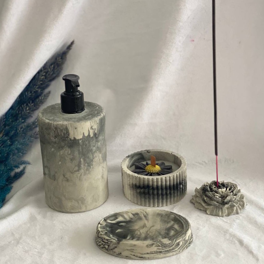 ست جا مایع و جاصابونی به صورت رنگ ابروبادی با بهترین کیفیت پودر و کاملا ضد آب و قابل شستشو. میتونین با رنگ دلخواه خودتون هم سفارش بدین برای اضافه کردن شات سنگی و جا عودی در قسمت گفتگو پیام بزارید