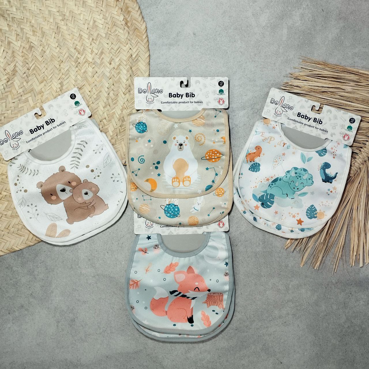 پیشبند غذا خوری دو عددی نوزادی برند دولانو طرح عروسکی مبلمونسرا مدل 300028