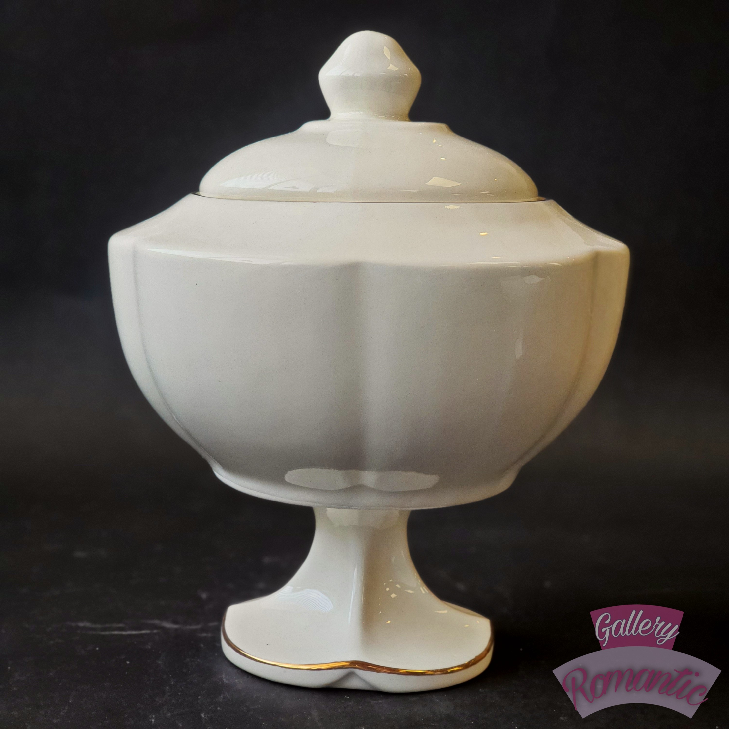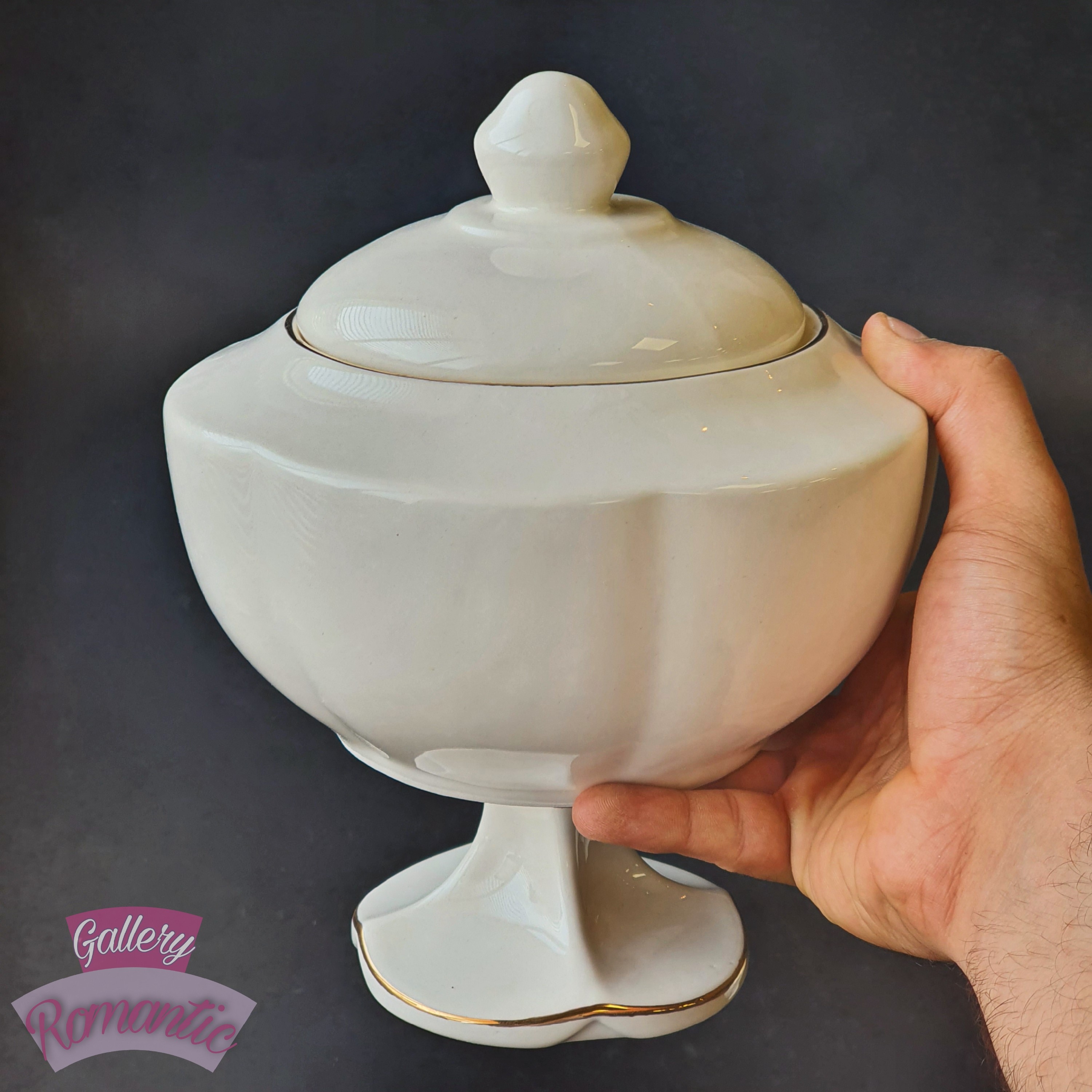 شکلات خوری پایه دار درب دار چینی سرامیک لبه طلایی valentinie مدل پاک والن مبلمونسرا مدل 295411