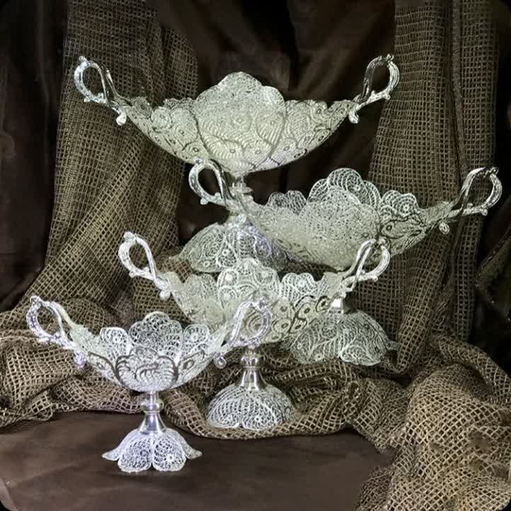 📌یکی از تولیدات مجموعه هنری تولید انواع کشکول می باشد. 💯مجموعه 4 مدل کشکول تولید می کند که مجموعا در 16 مدل در اندازه های مختلف تولید می شود. ✅این کشکول با توجه به شکل دسته ای که دارد به کشکول دسته دوبل معروف است و دارای 4 سایز می باشد. ✅ این کشکول دسته دوبل شماره 1 می باشد که برای پذیرایی شیرینی، گز، شکلات استفاده می شود و البته کوچکترین کشکول این مدل است. 🧐 برای خرید محصولات و ظروف ملیله از آرم که با حروف انگلیسی در ظرف حک شده مطمئن شوید . ☑️جنس محصولات ملیله از مس است که در فرآیندهای تخصصی آبکاری نقره شده است. 💯روی محصولات ملیله برند پوششی قرار دارد که باعث جلوگیری از سیاه شدن می شود. ✅کلیه مراحل تولید محصولات ملیله که بیش از 50 مرحله است با دست هنرمندان اصفهانی انجام شده و هیچ ماشینی در آن دخالت ندارد. ملیله از جمله صنایع دستی محبوب ایرانیان می باشد. 📌برند از معتبرترین و با سابقه ترین برندهای تولیدکننده ملیله می باشد که بیش از 20سال سابقه فعالیت دارد و کلیه محصولات که بیش از 150 قلم جنس می باشد دارای ضمانت کیفیت سه ساله می باشد. 🤝 در با سلام سعی کرده ایم کلیه تولیدات را در جوی سالم و مطلوب از تولیدبه مصرف و بدون واسطه به دست شما مصرف کننده عزیز در هر جای ایران عزیز که باشید برسانیم. 🚿مهم ترین شاخصه محصولات ملیله کاری مصرفی بودن آنهاست که در عین زیبایی و هنر، دارای دوام رنگ و ضمانت کیفیت حتی با شستشو و استفاده می باشد. 😰نکته: از ریختن جوهر نمک ، وایتکس و مواد اسیدی روی ظروف ملیله خودداری فرمائید. 💞در این مجموعه با تنوع فراوان جهیزیه کامل عروس خانم تولید می شود. 🎁 محصولات مجموعه هنری صنایع دستی هدیه ای است ارزشمند ماندگار، بی نظیر و خاص.