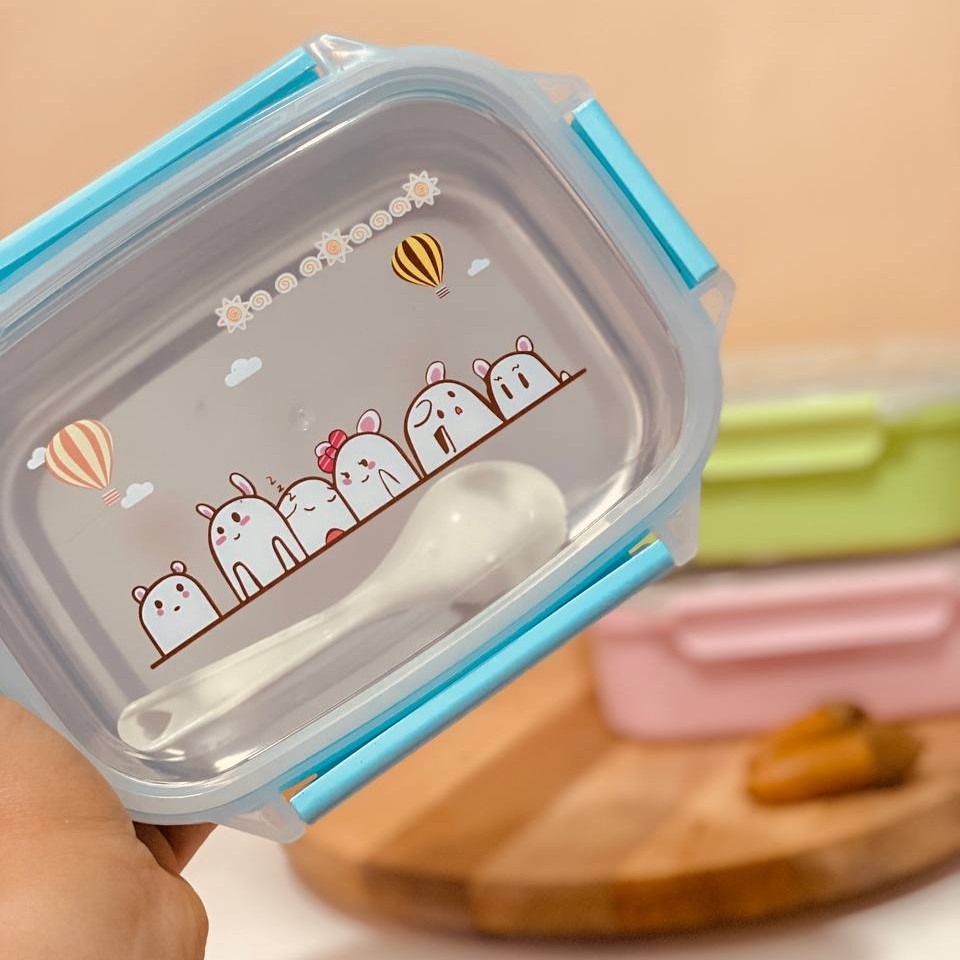 ظرف وارداتی باکیفیت داخل استیل دارای قاشق وسه رنگ مختلف به دلیل جمع وجوربودن مناسب گذاشتن داخل کیف برای استفاده در مهد ومهمانی ومدرسه یک هدیه شیک وکیوت برای کوچولوهای دلبندتون رنگ انتخابی روموجودی بگیرید