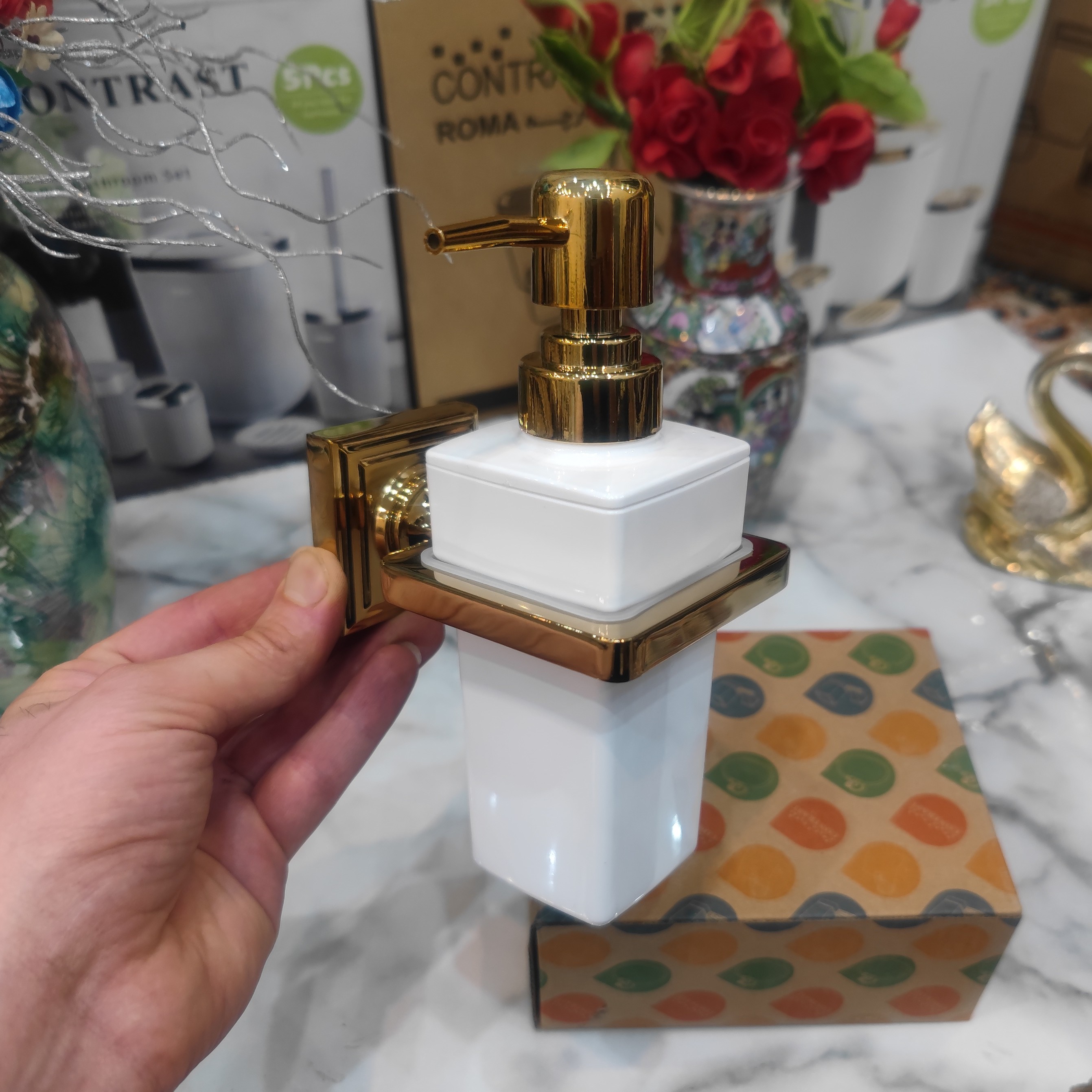 جای مایع دیواری وارداتی برند کنتراست نو آکبند بسیار زیبا و باکیفیت و شکیل و جذاب کد 29 رنگ بسیار زیبا و شکیل و پرطرفدار طلایی براق ساخته شده از استیل وبرنج و سرب آبکاری طلایی به همراه یدک پلاستیک فشرده باکیفیت و سرپمپ بی نظیر تضمین کیفیت ساخت عالی و مناسب ترین قیمت دارای کارتن و جعبه اختصاصی و باکیفیت محصول قابلیت استفاده در سرویس بهداشتی یا حمام یا آشپزخانه ارسال سریع به تمام نقاط کشور برای خریداران عزیز