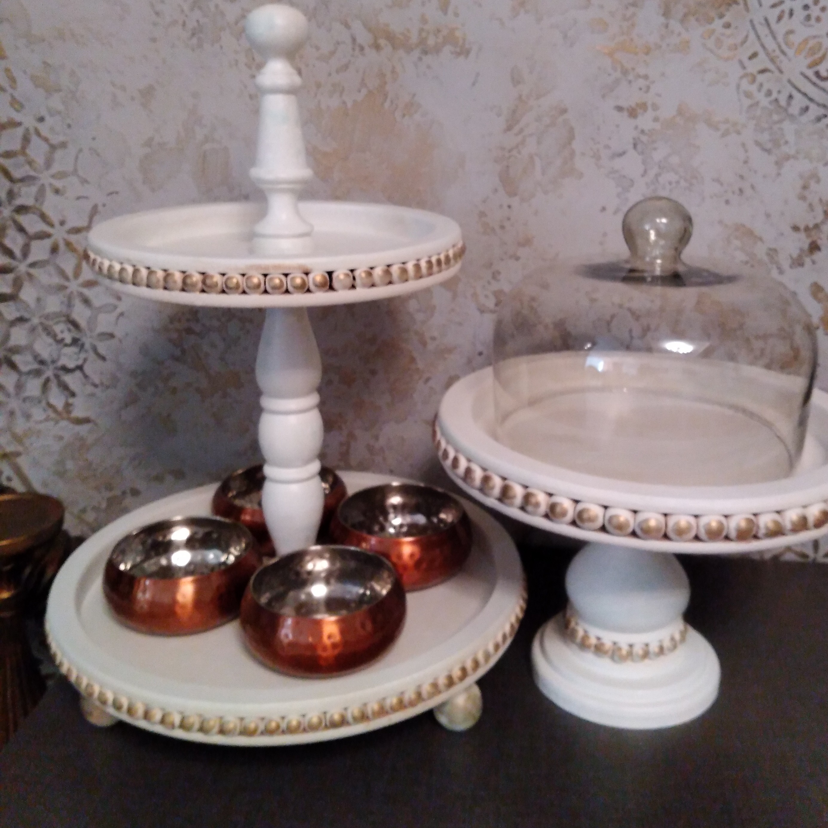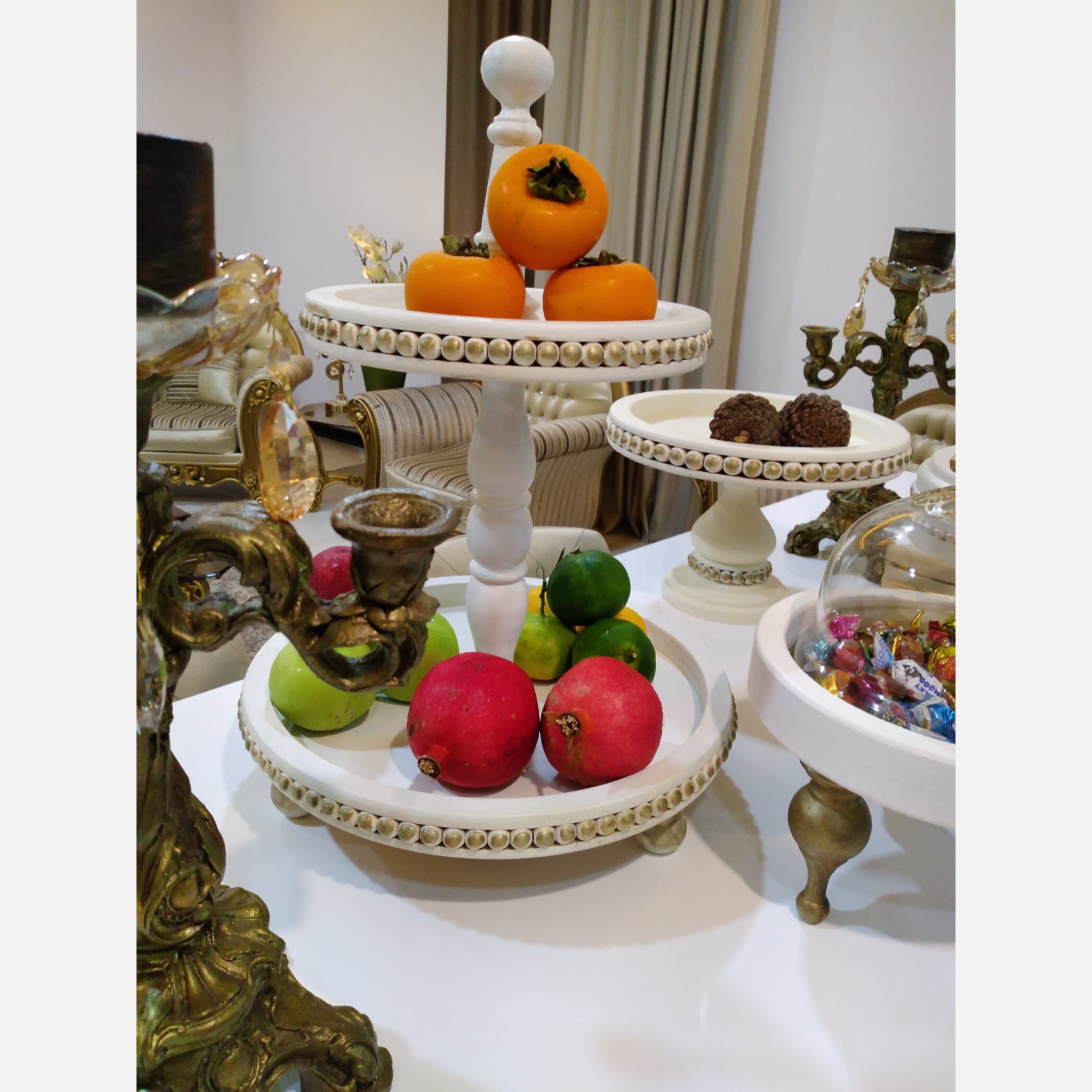 ظرف چوبی پذیرایی قطر صفحه پایین سی و شش و قطر صفحه بالا بیست و پنج سانت مبلمونسرا مدل 274243