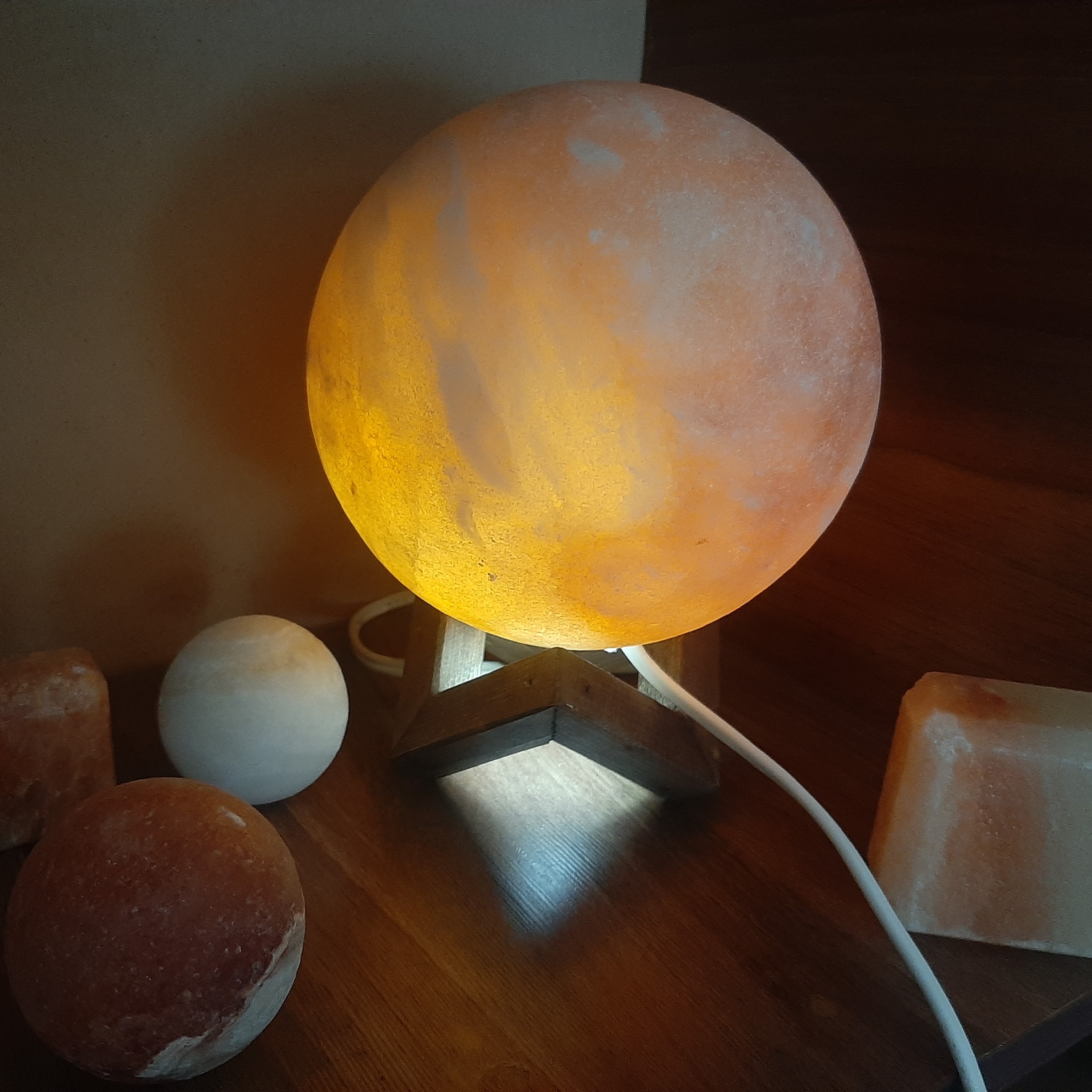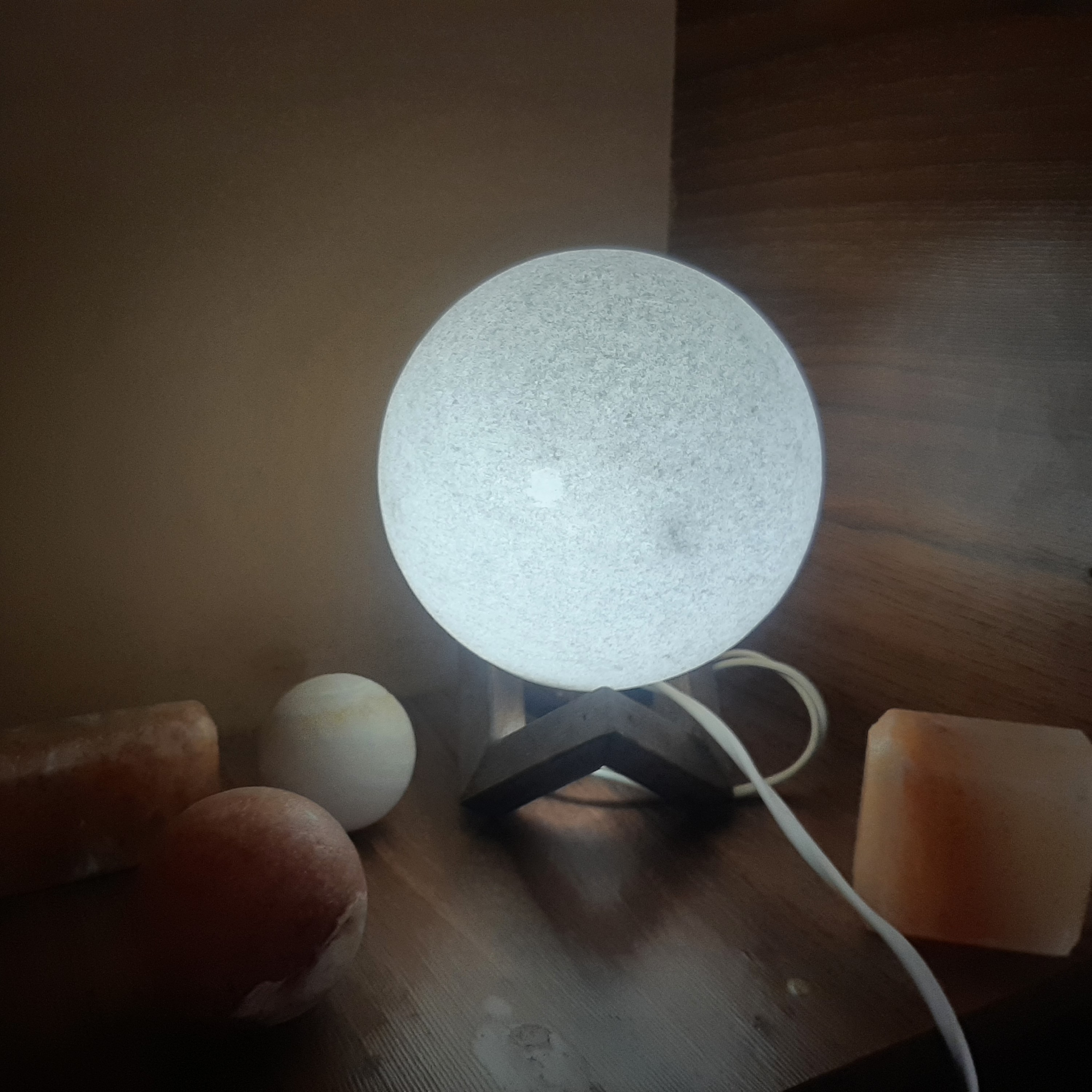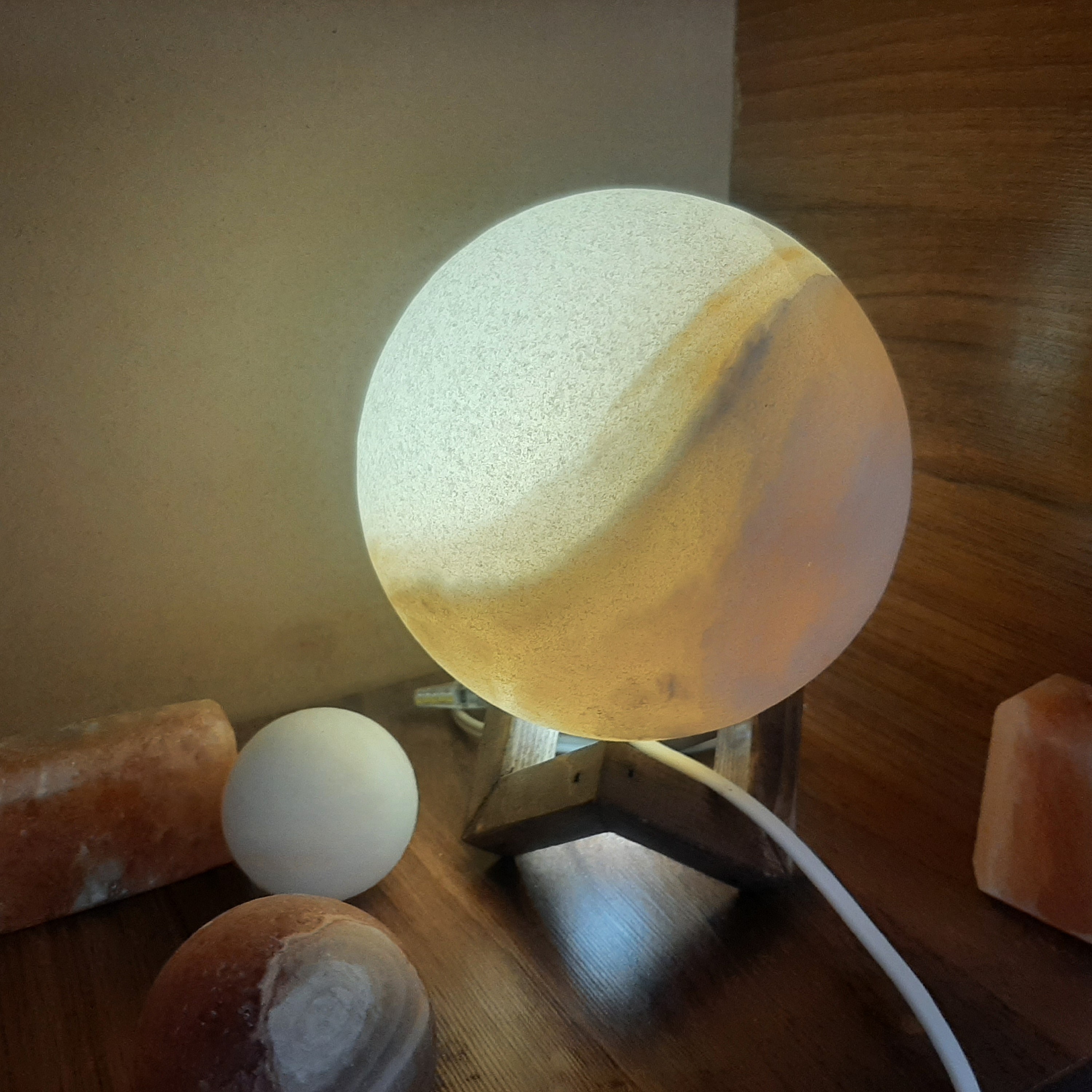 آباژور گوی سنگ نمک 20 با پایه چوبی. مبلمونسرا مدل 232927