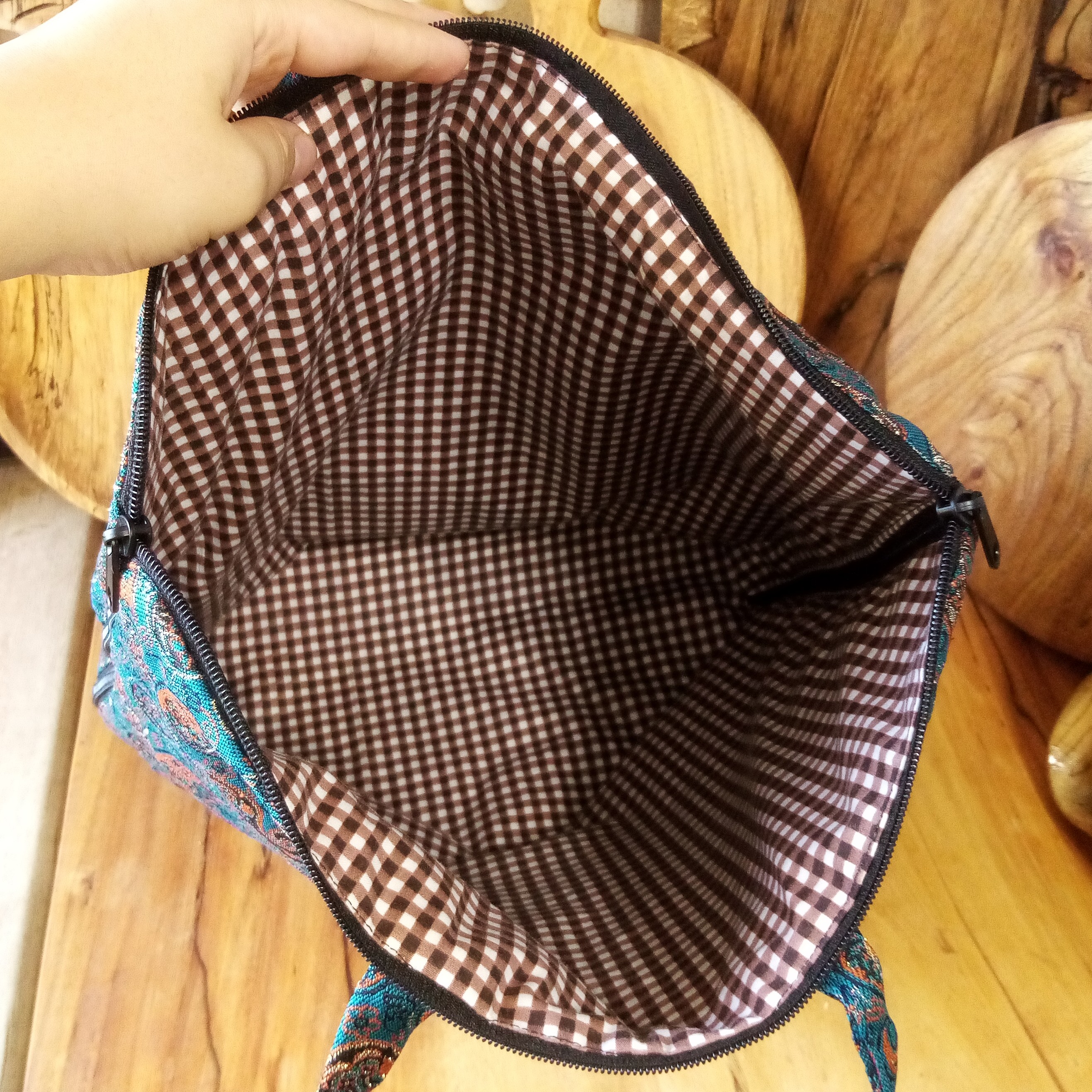 کیف نان حجم دار باپارچه ترمه بسیار باکیفیت قابلیت دورو شدن، ضدآب، دورزیپ قابلیت نگهداری نان در یخچال ⭐️ بدون نفوذ آب داخل کیف سه لایه ترمه، سفره ضخیم وآستری پارچه کتان نخ ضخیم تابه مرورزمان نازک نشود تعداد محدود
