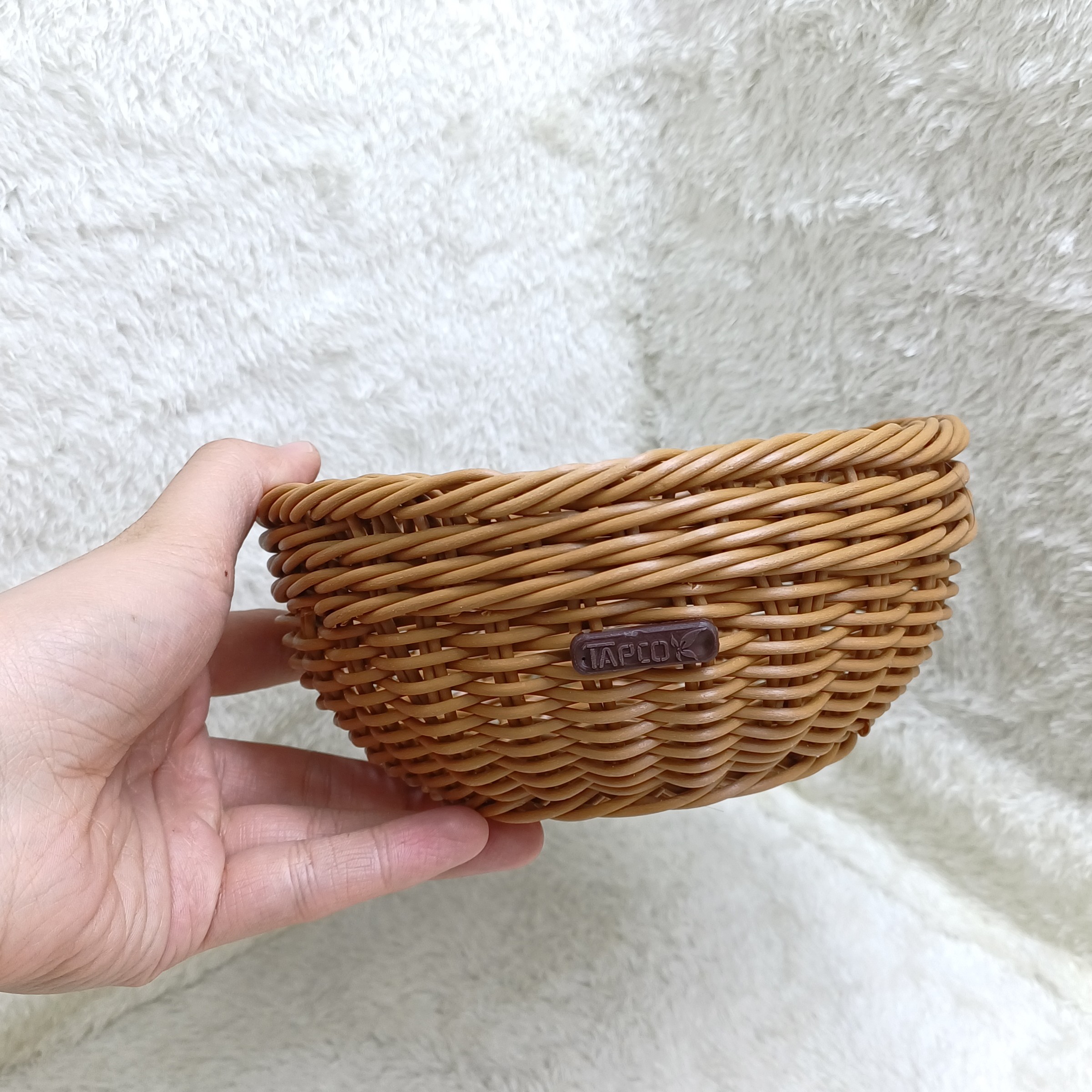 سبد دست بافت گرد کوچک رنگ قهوه ای ،لطفاً قبل از ثبت سفارش موجودی بگیرید مبلمونسرا مدل 292154