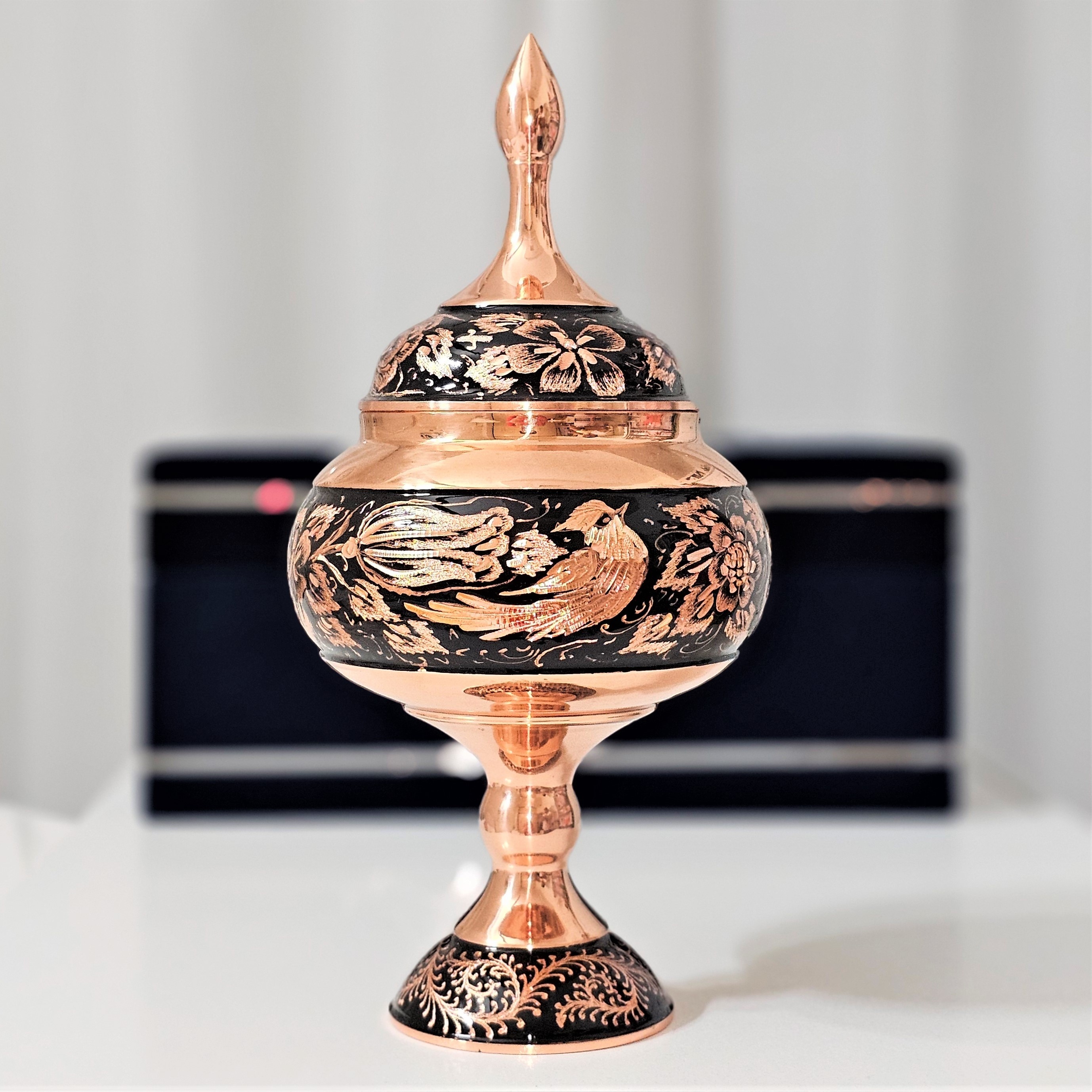 شکلات خوری مسی مدل الماس تراش ارتفاع30 به همراه جعبه فانتزی مبلمونسرا مدل 296653