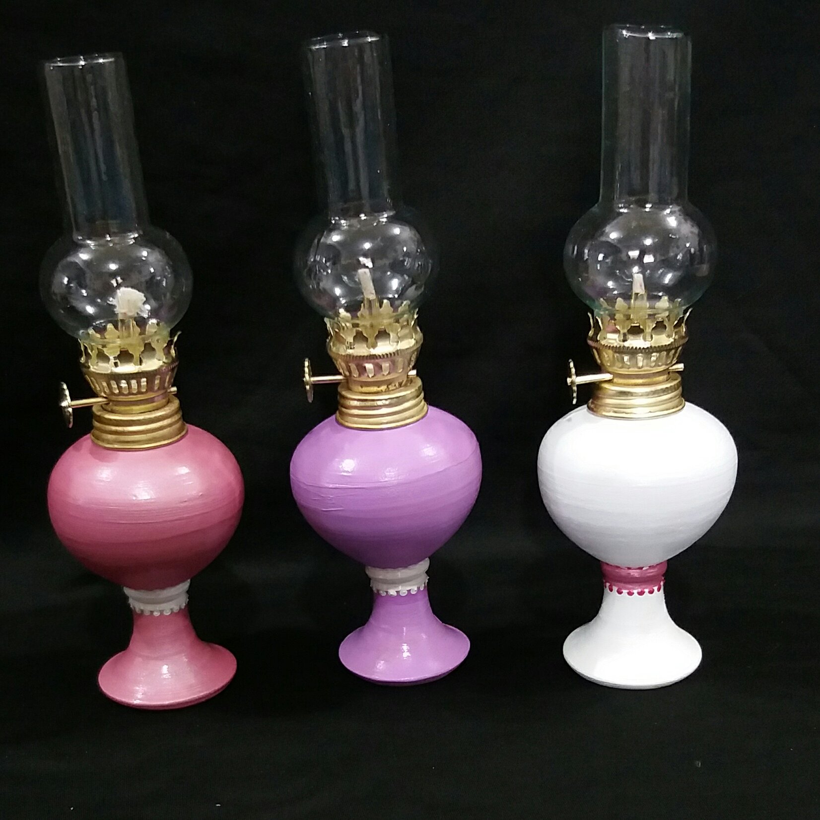 چراغ ها درسایز کوچک وقابل روشن شدن با نفت یا الکل میباشد. اما بخاطر پیدا نبودن فیتیله بهتر است برای دکوری و تزیینی استفاده شود. در رنگهای متنوع و ساده به درخواست مشتری میباشد.