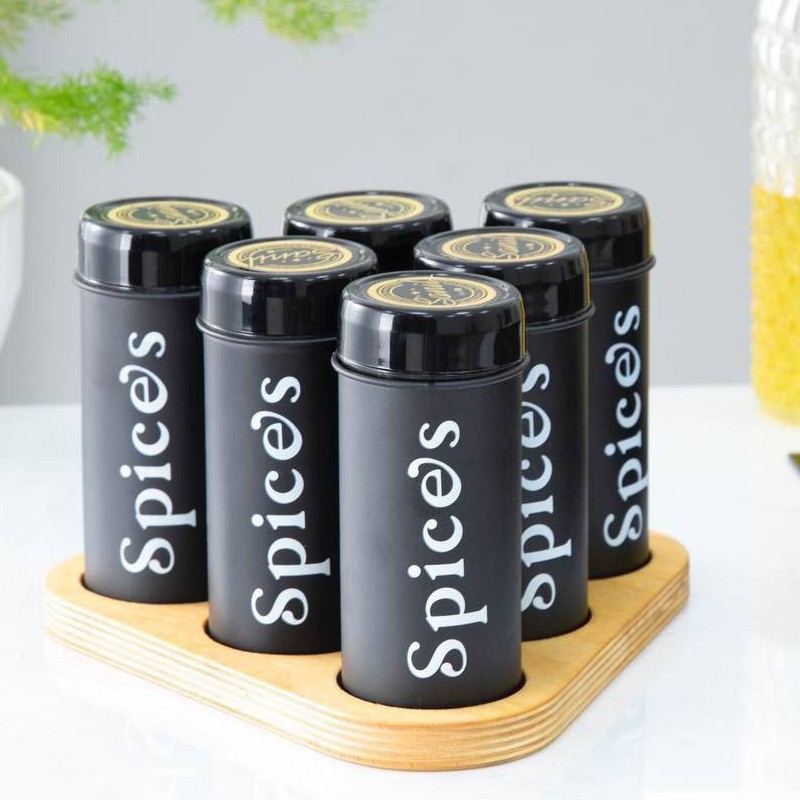 جا ادویه6تایی رو میزی جنس فلزی رنگ سفید و مشکی