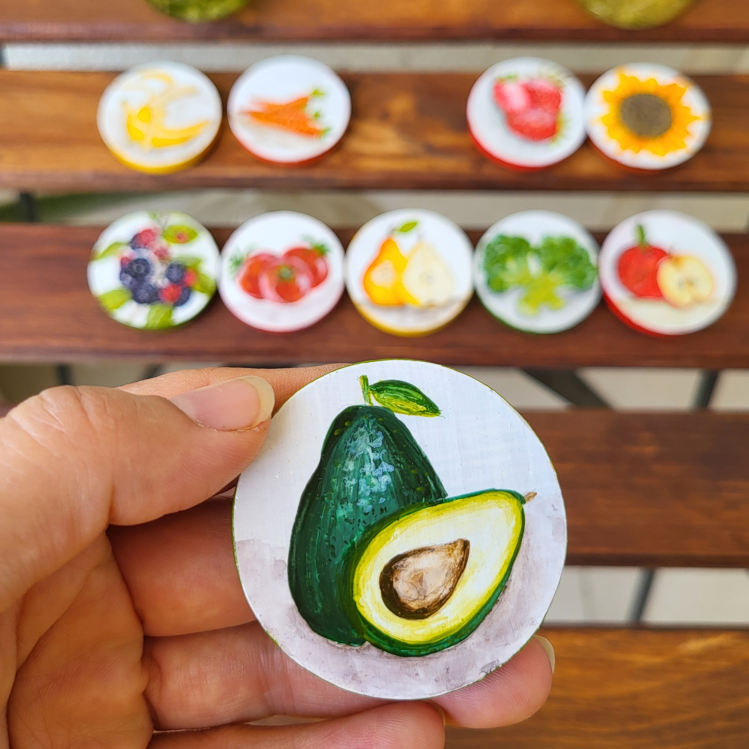 مگنت روی یخچال طرح آواکادو قطر 7سانتیمتر طراحی شده بادست و رنگ اکریلیک و قابل شستشو با آب سرد و اسکاج نرم مبلمونسرا مدل 259030
