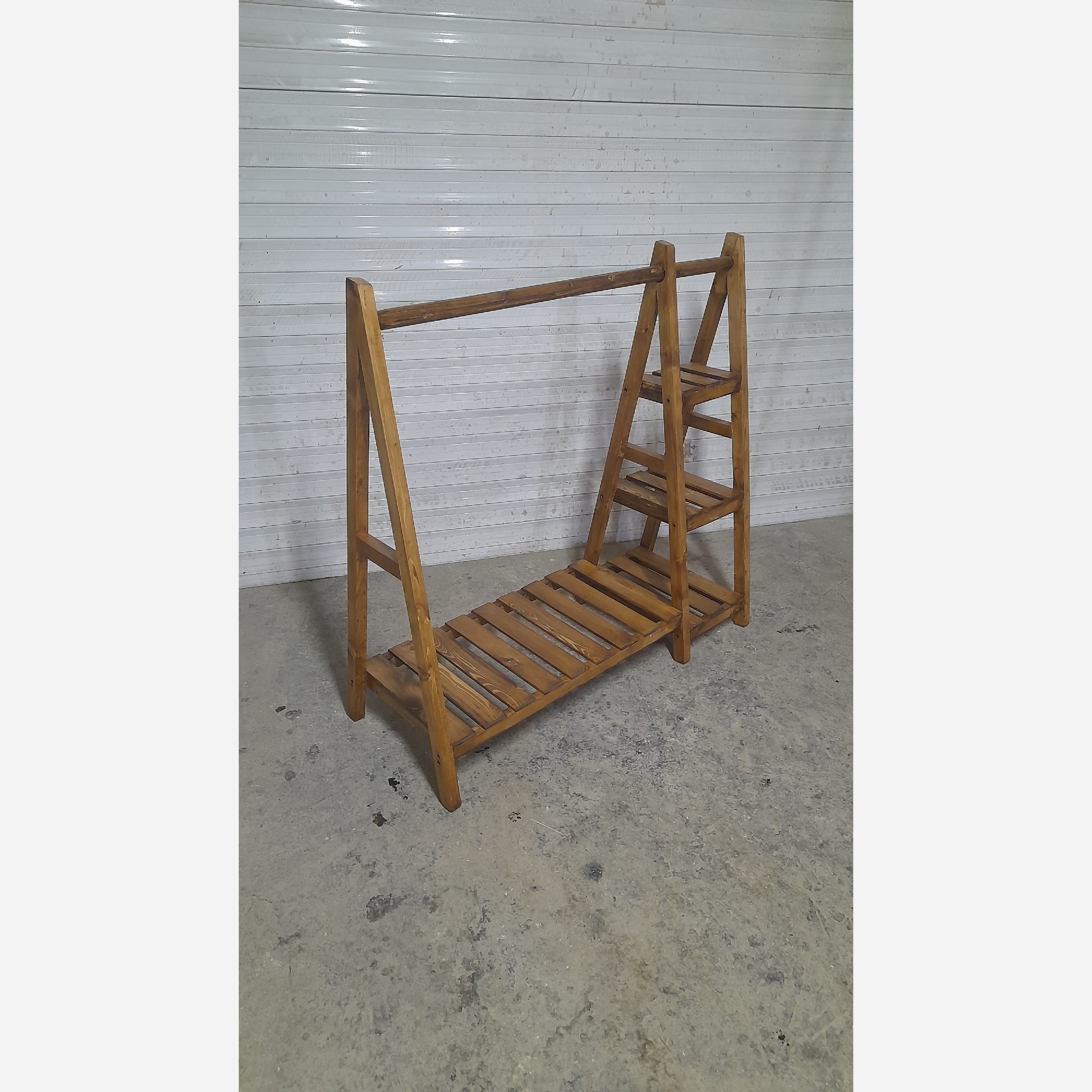 رگال لباس چوبی کودک مدل ذوزنقه ایی ابعاد این نمونه رگال به طول 1متر در ارتفاع 1متر میباشد این محصول کرم روشن یا همان خودرنگ چوب جلاخورده میباشد قابل سفارش در رنگبندی های قهوهای تیره و روشن کرم روشن و عسلی