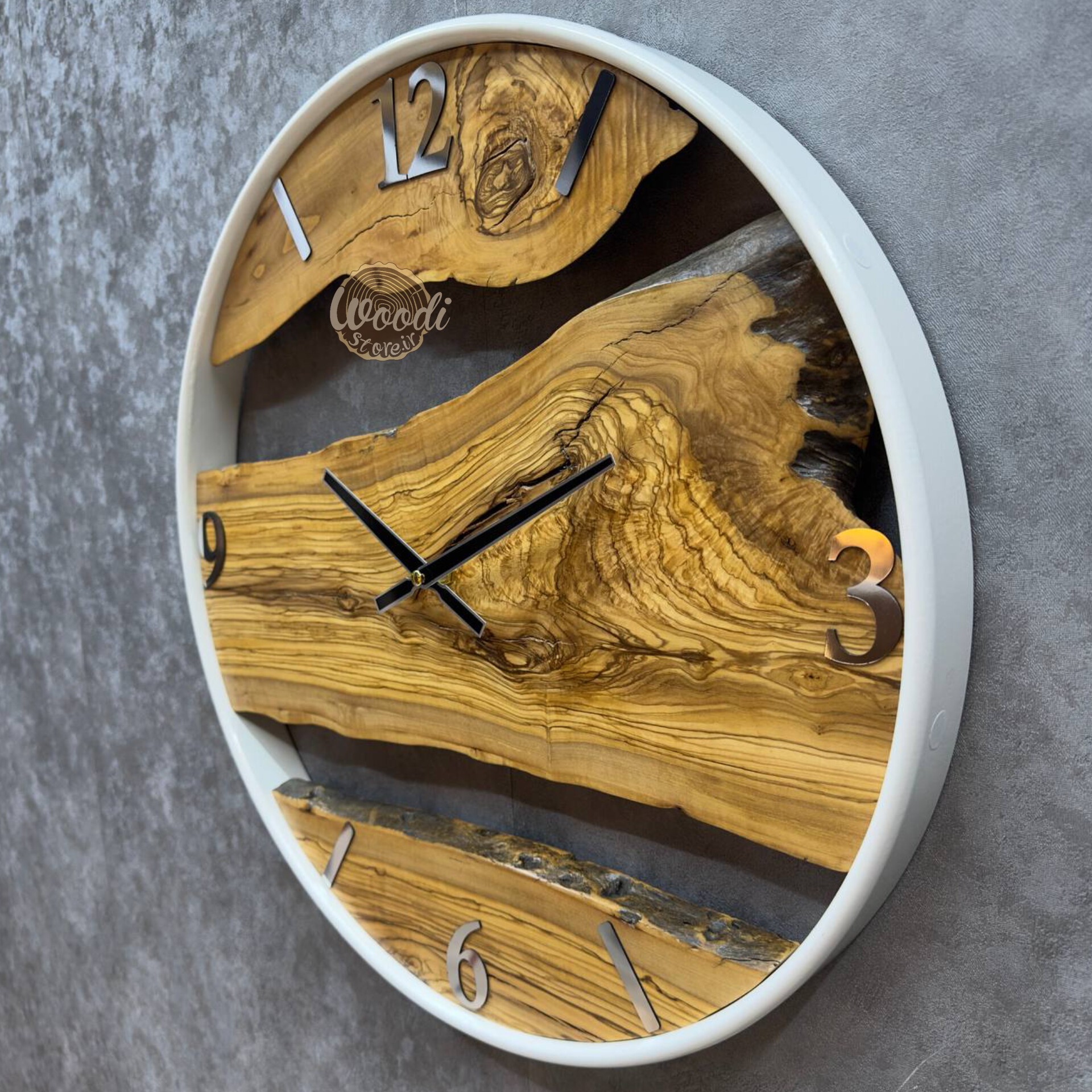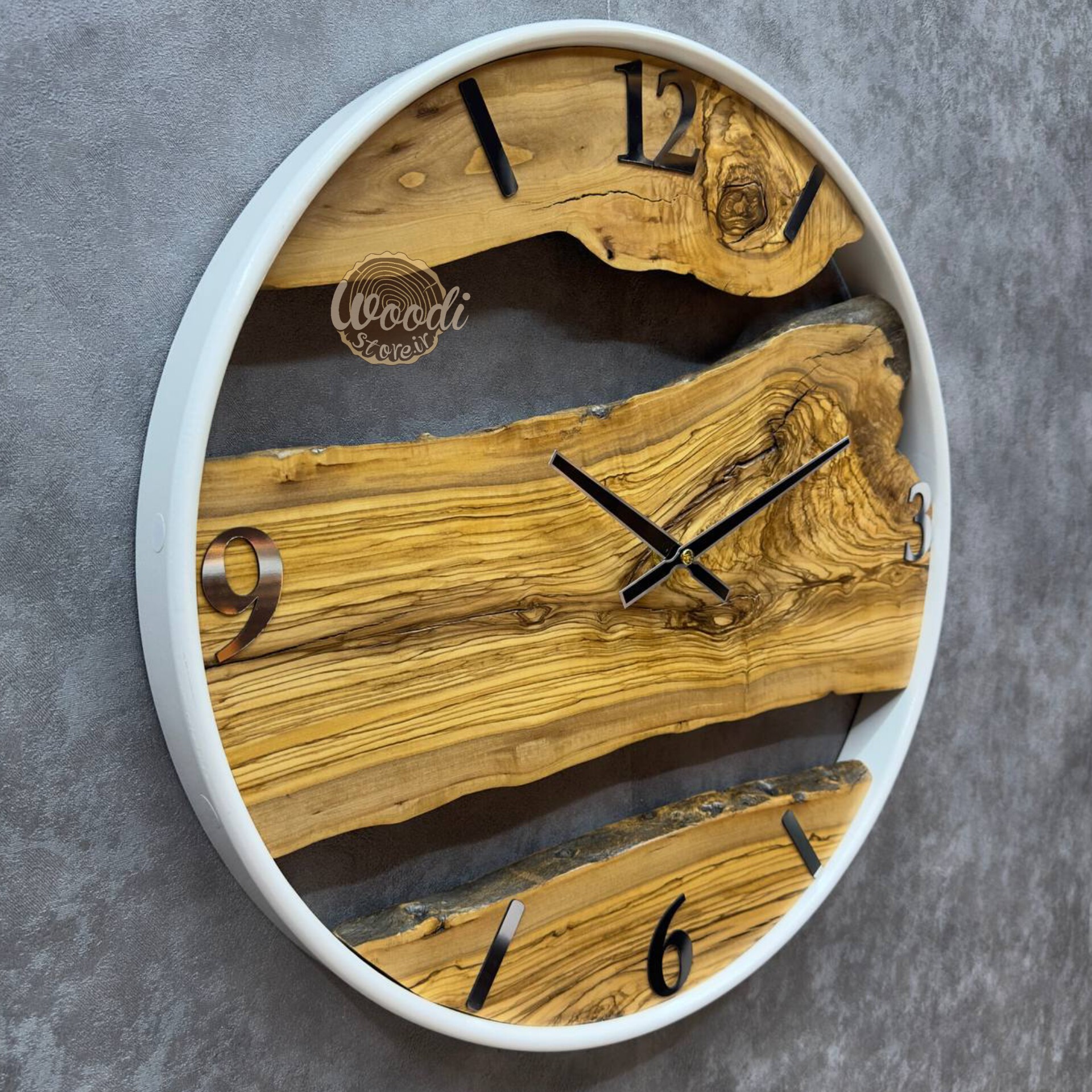 ساعت دیواری چوبی روستیک قطر 50 سانت کد C5104 چوب زیتون فریم سفید مبلمونسرا مدل 239804