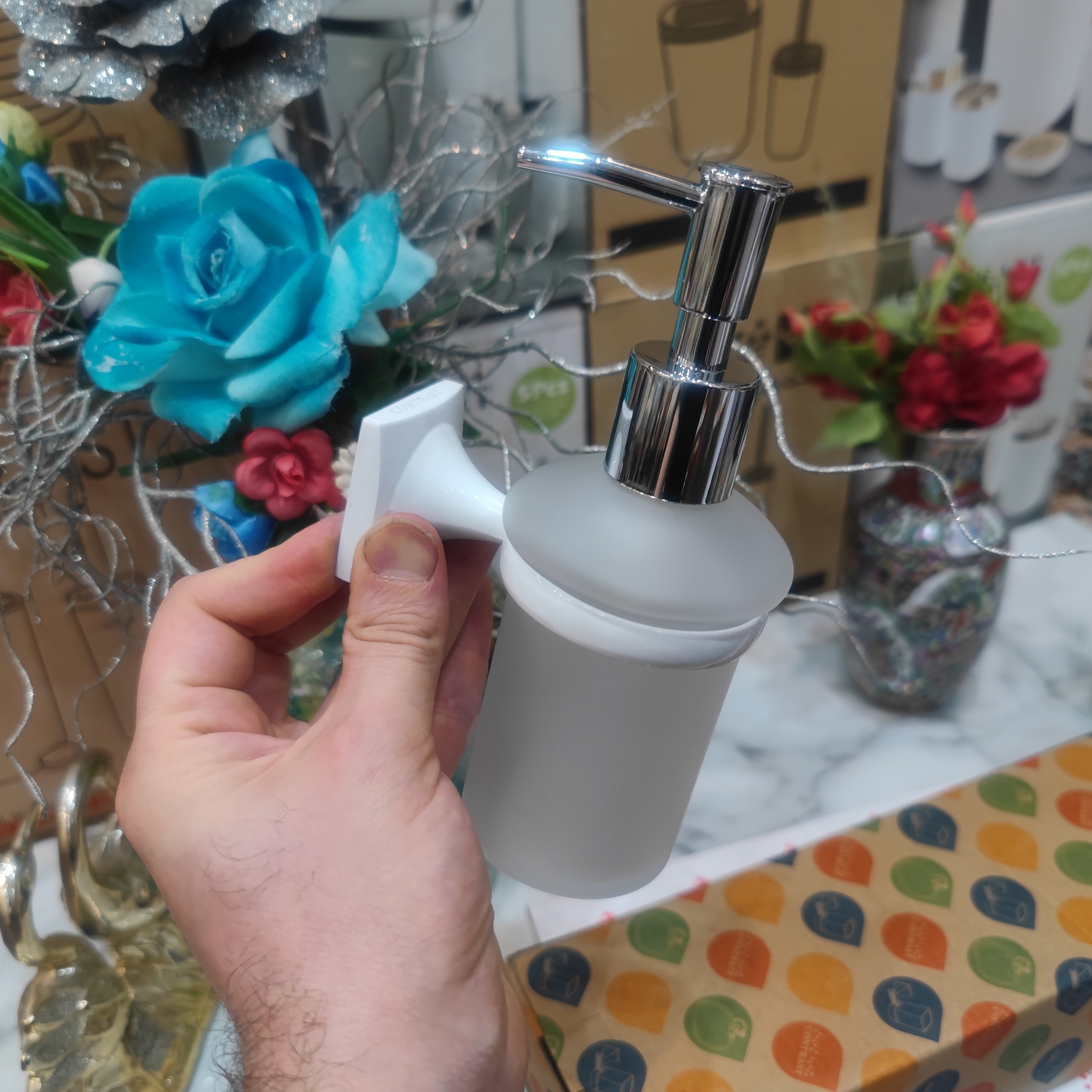 جای مایع دیواری وارداتی برند کنتراست نو آکبند بسیار زیبا و باکیفیت و شکیل کد 55 سفید رنگ زیبا و شکیل و پرطرفدار سفید پایه ساخته شده از استیل و برنج و سرب رنگ سفید وارداتی باکیفیت و شکیل به همراه مخزن کریستالی شفاف باکیفیت با سرپمپ باکیفیت تضمین کیفیت ساخت عالی و مناسب ترین قیمت دارای کارتن و جعبه اختصاصی و باکیفیت و خاص محصول قابلیت استفاده در سرویس بهداشتی یا حمام ارسال سریع به تمام نقاط کشور برای خریداران عزیز