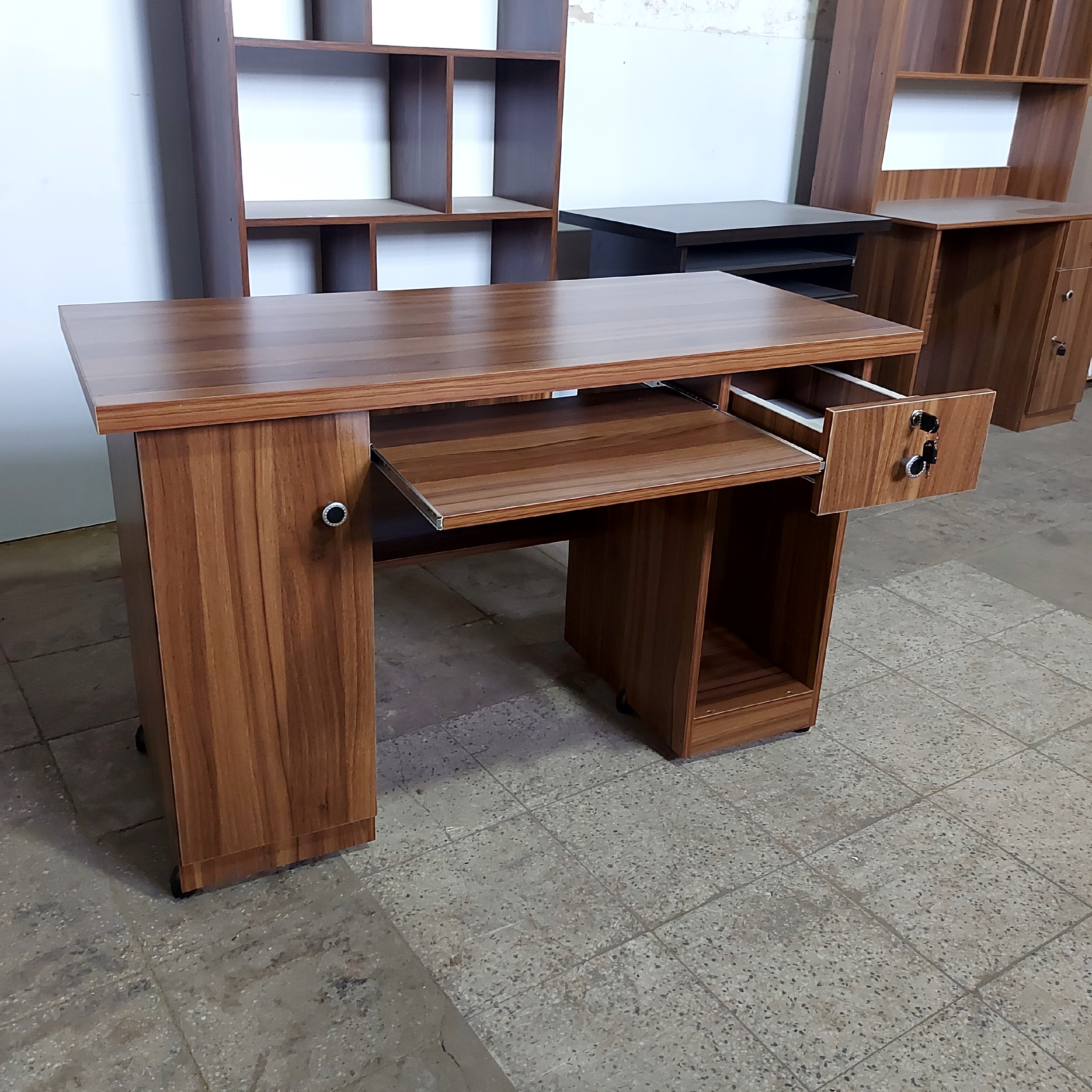 میز کامپیوتر مدل 7520 با بهترین جنس نوپان ملامینه ضد خش و لبه های کار نوار پی وی سی شده ساخته میشود ابعاد صفحه 120 در 55 ارتفاع میز 76 سانت ارتفاع جای کیس تا زیر کشو 47 سانت فضای جای کیبورد 55 سانت کشو دارای قفل کمد دارای طبقه دا رای رنگبندی برای انتخاب رنگ و اطلاعات بیشتر به چت با سلام مراجعه شود ، با تشکر