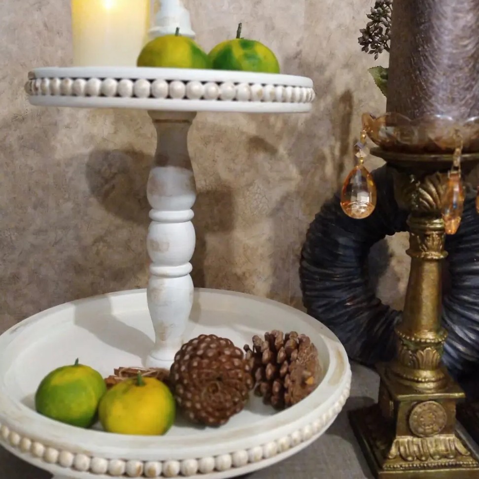 میوه خوری چوبی یا رایزر چوبی گرد دو طبقه مبلمونسرا مدل 278756