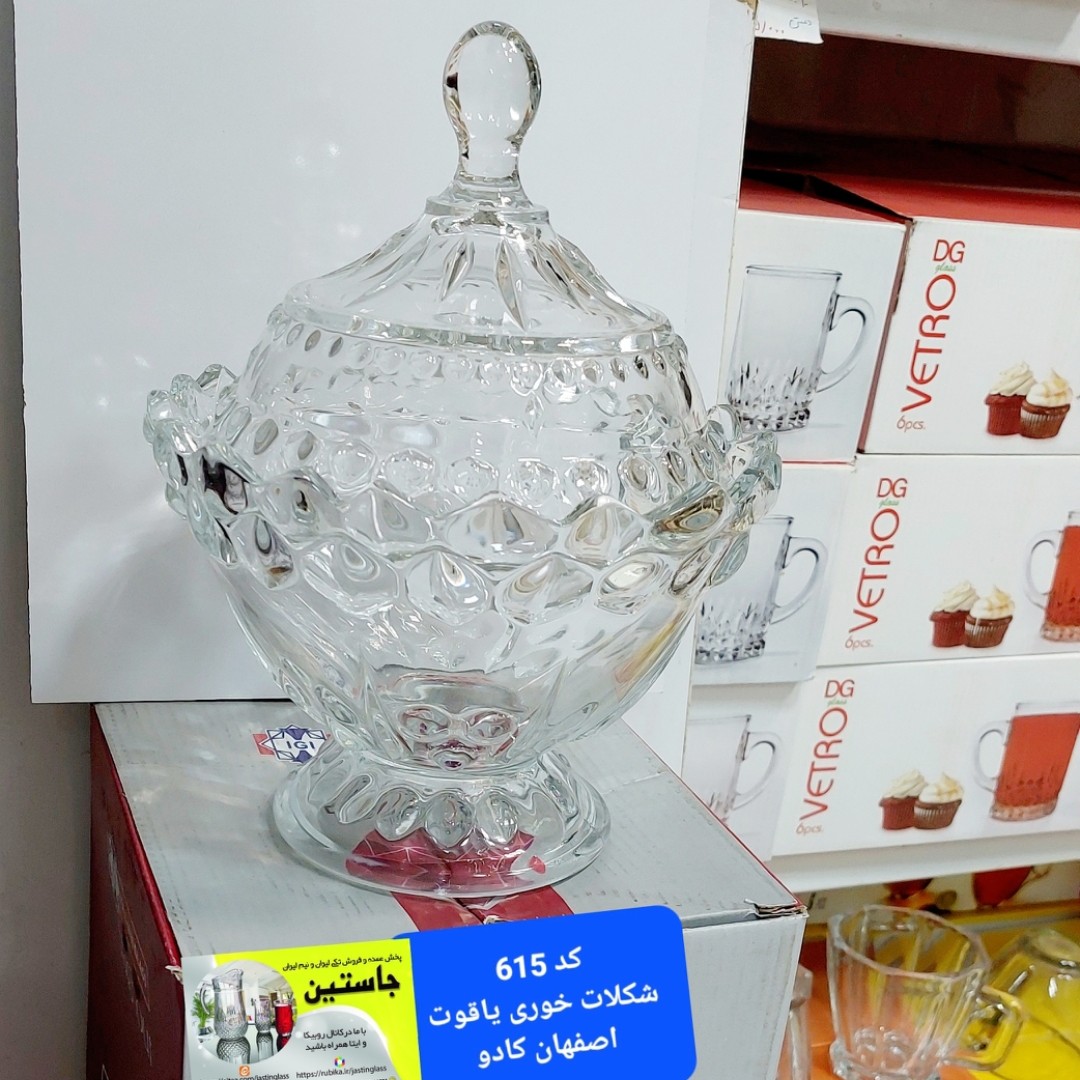شکلات خوری پایه دار یاقوت کار اصفهان گلس بسیار با کیفیت ظرافت ک نگم براتون 😍😍 با جعبه کادویی