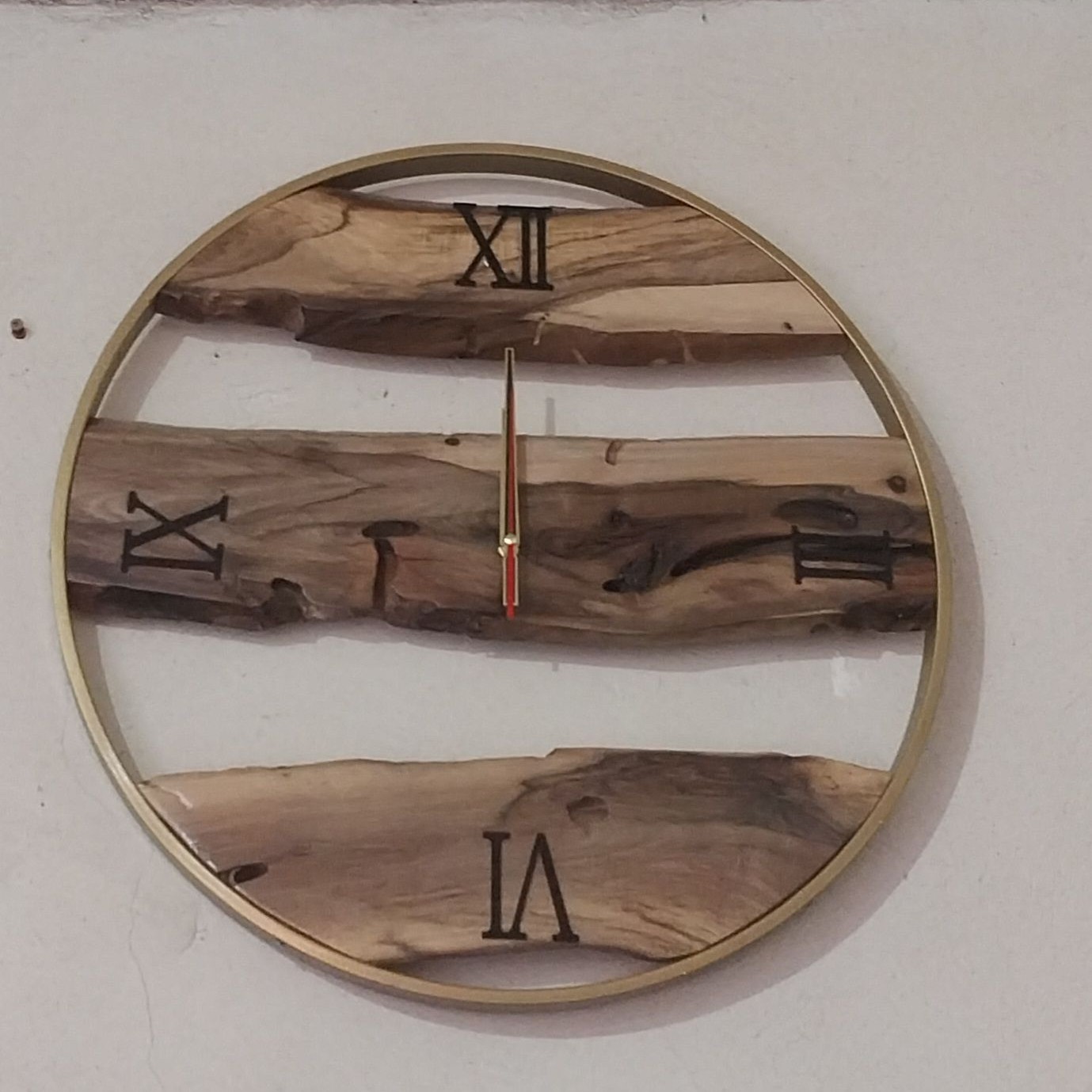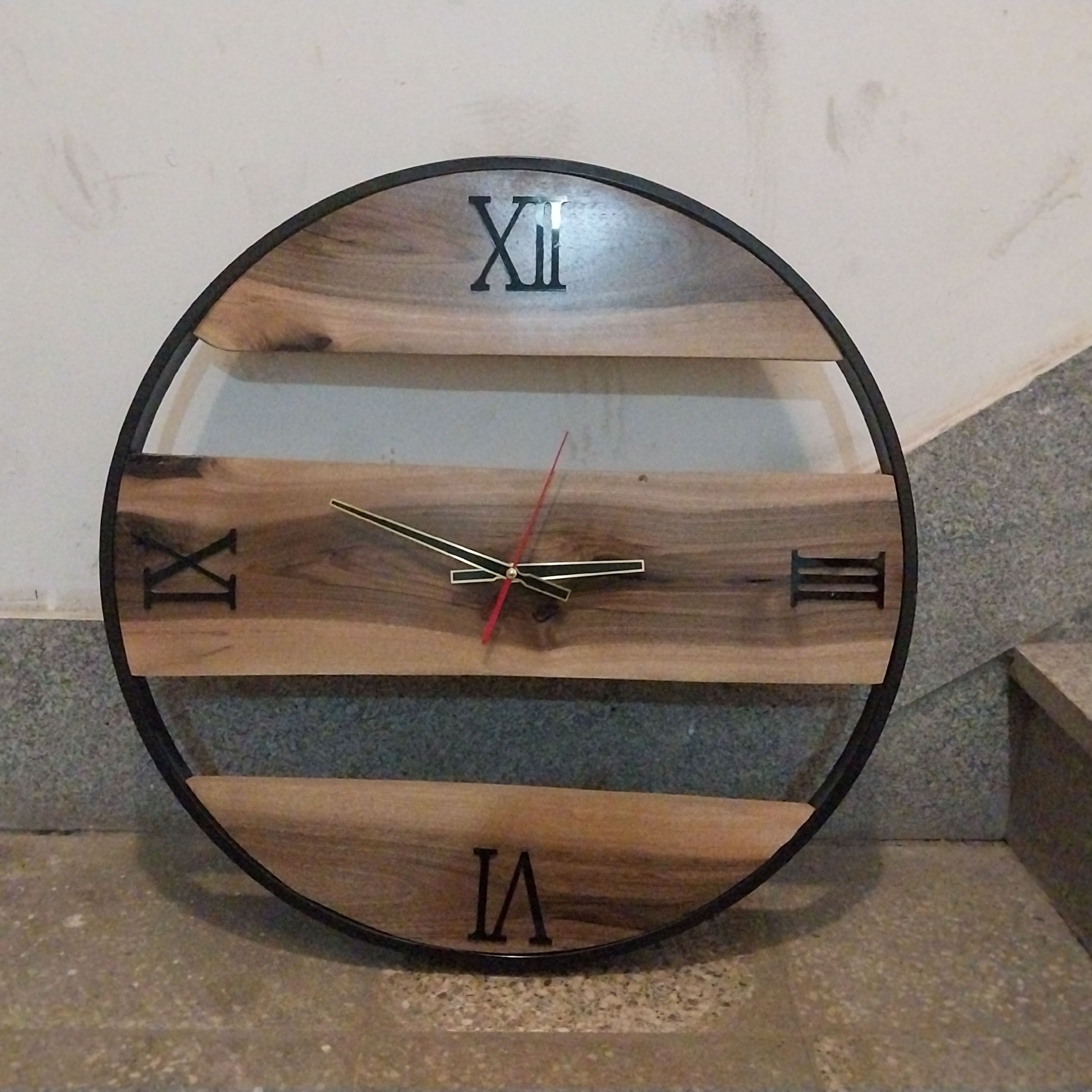 ساعت دیواری چوبی جنس چوب گردو موتور وارداتی با یک سال ضمانت رینگ فلزی دور رنگ کوره ضدخش در دو مدل ارسال با چاپار و به صورت