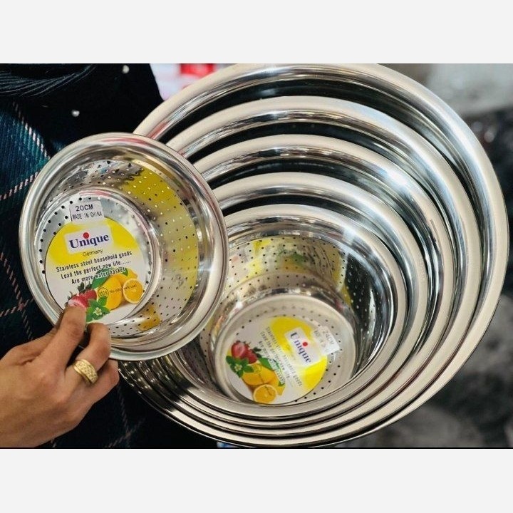 جنس ضخیم لبه دار سنگین،استفاده آسان و کاربردی سایز20،24،28،32،36،40 6 عدد لگن 6 عدد آبکش مقاوم در برابر ضربه