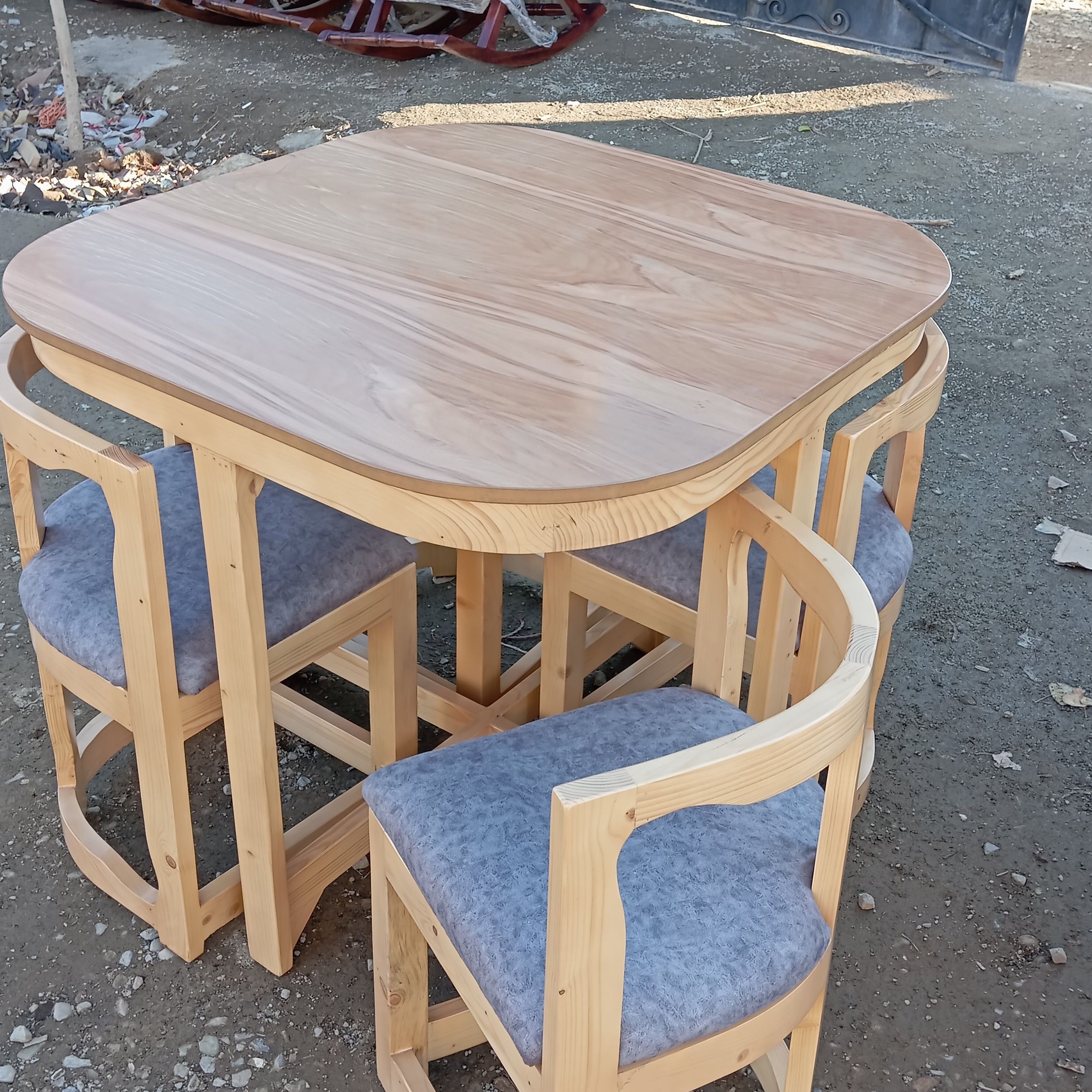 میز 4نفره مربع لبه گرد صفحه چوب راش بدنه چوب روسی