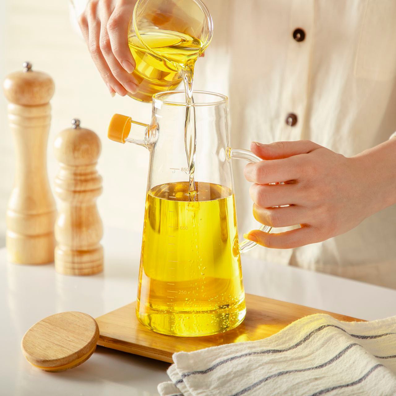 روغن ریز پیرکس 1100 میل ظرف روغن پیرکس روغن ریز شیشه پیرکس در واشردار روغن ریز واشردار مبلمونسرا مدل 293276