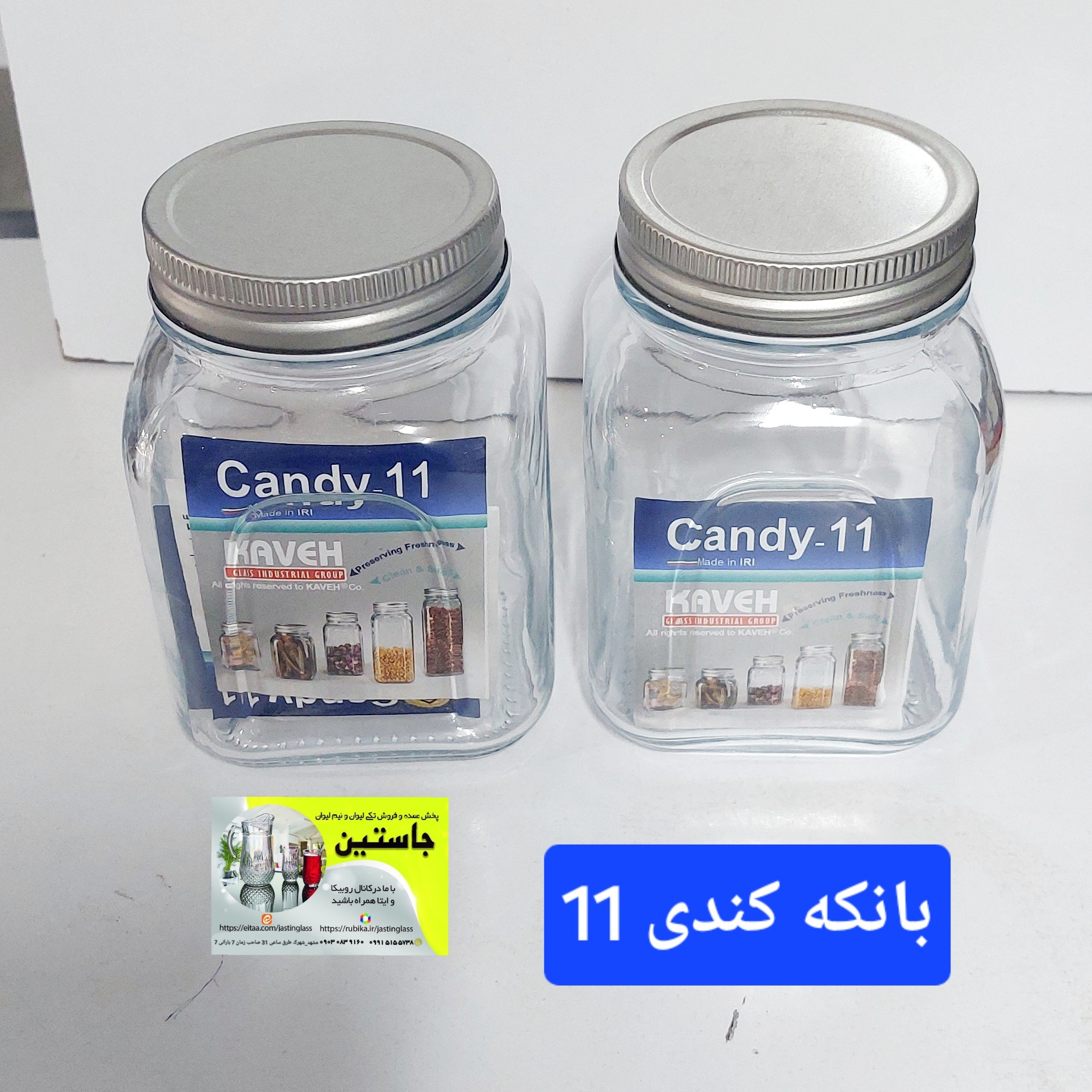 بانکه کندی 11 به صورت فله شما هر تعداد دوست دارید میتونید ثبت کنید اندازه ارتفاع 11 سانت قطر 9 سانت جنس شیشه ای درب استیل حجم حدود نیم کیلو مناسب برای حبوبات ترشی مربا ... درب محکم سفت بسته میشه خیلی با کیفیت شیک