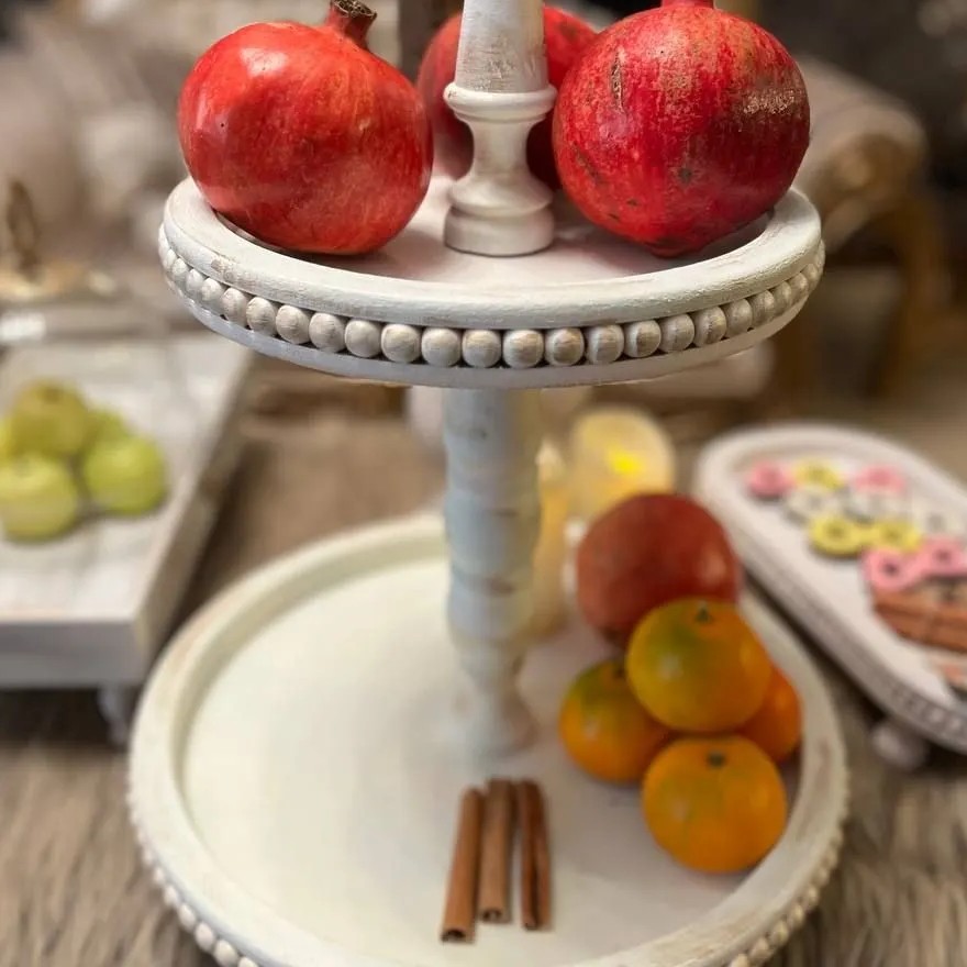 رایزر چوبی گرد دو طبقه قطر پایین سی و شش و قطر صفحه بالا بیست و پنج ارتفاع پنجاه و چهار سانت