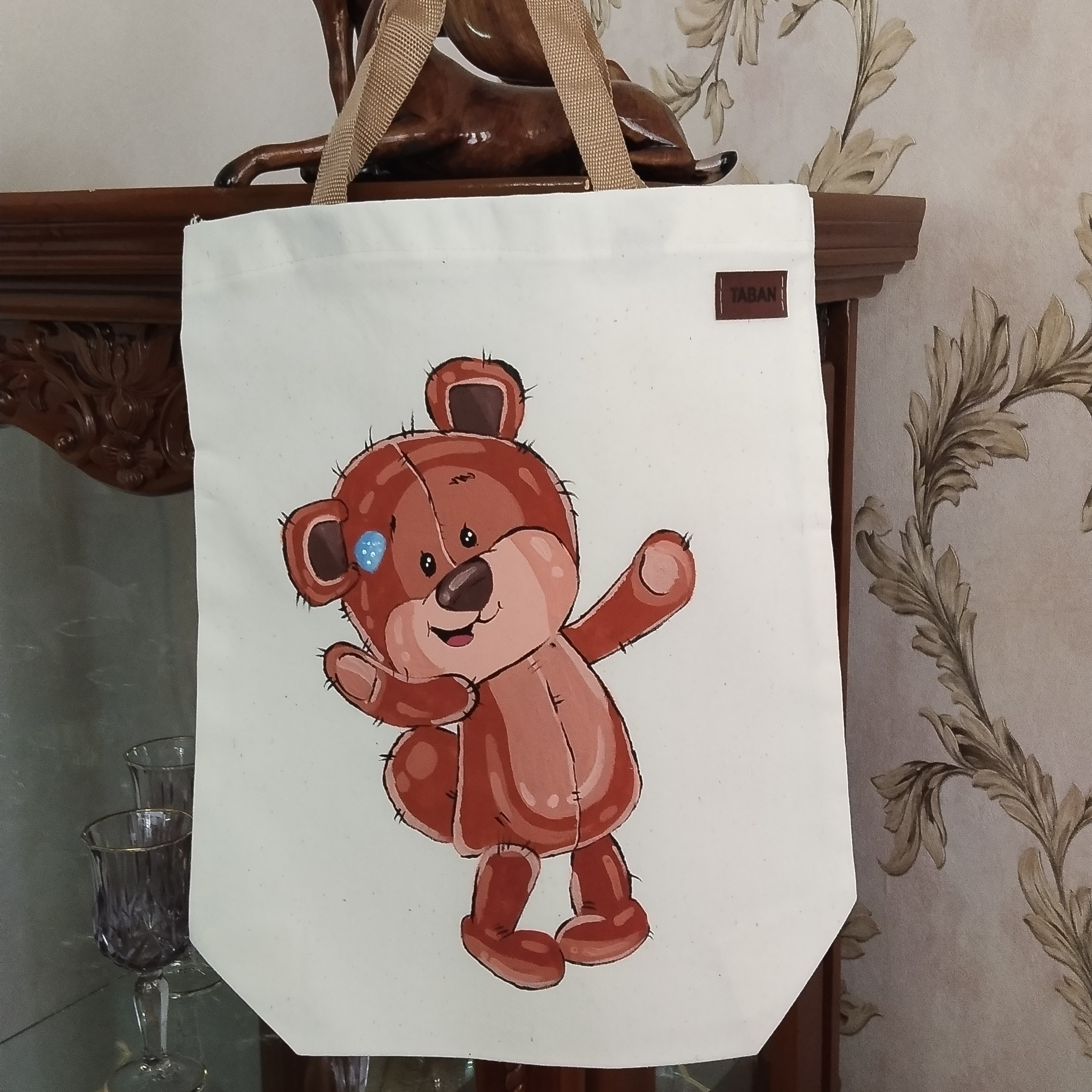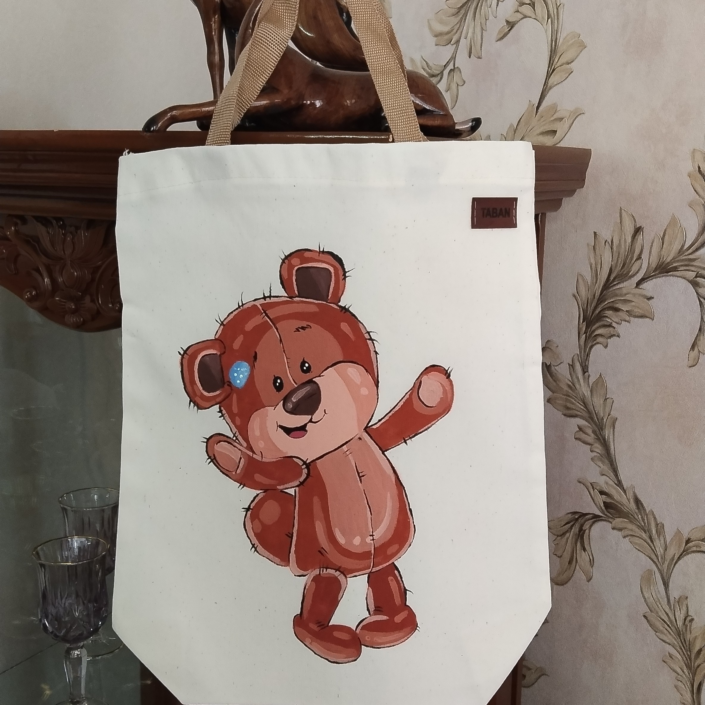 کیف پارچه ای متقال ضخیم نقاشی شده طرح خرسی مبلمونسرا مدل 299474